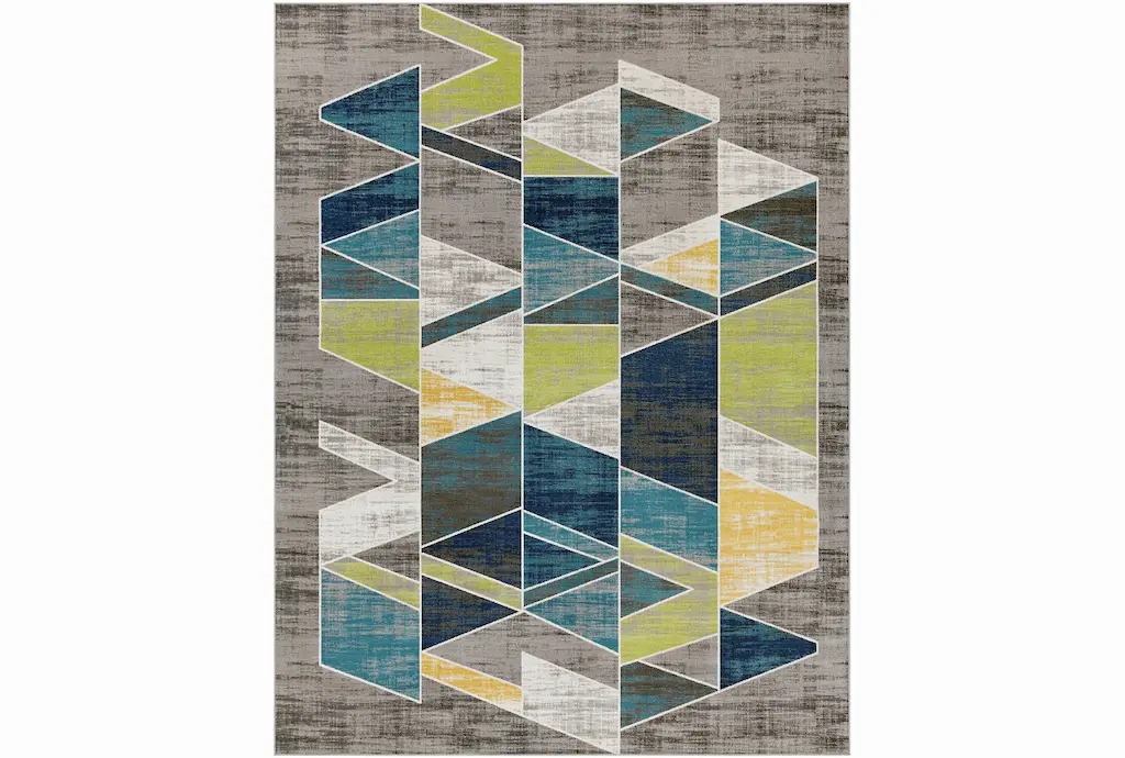 7'8"x10'3" Fiber Rectangle Rug | Teal & Lime Geometric Triangles | Indoor | Low Pile By Surya