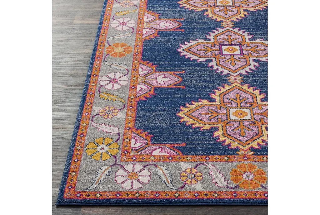 Enhance your dining room with the stunning 7'8"x10'3" Fiber Rug. This traditional botanical design features bold multicolors, making it a striking addition to any indoor space. The low pile and 100% polypropylene material ensure durability and ease of maintenance.