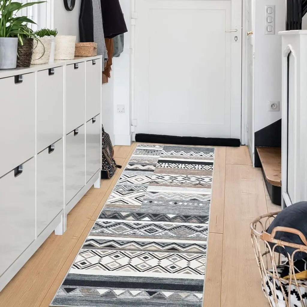 Add a touch of mid-century modern flair to your space with the 7'8"x10'3" Fiber Rectangle Rug by Surya. Featuring an eye-catching teal and lime geometric triangle design, this rug is perfect for any indoor setting. Its low pile construction ensures durability and ease of maintenance, making it an ideal addition to high-traffic areas.