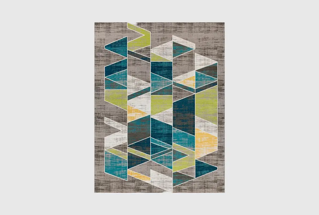 7'8"x10'3" Fiber Rectangle Rug | Teal & Lime Geometric Triangles | Indoor | Low Pile By Surya
