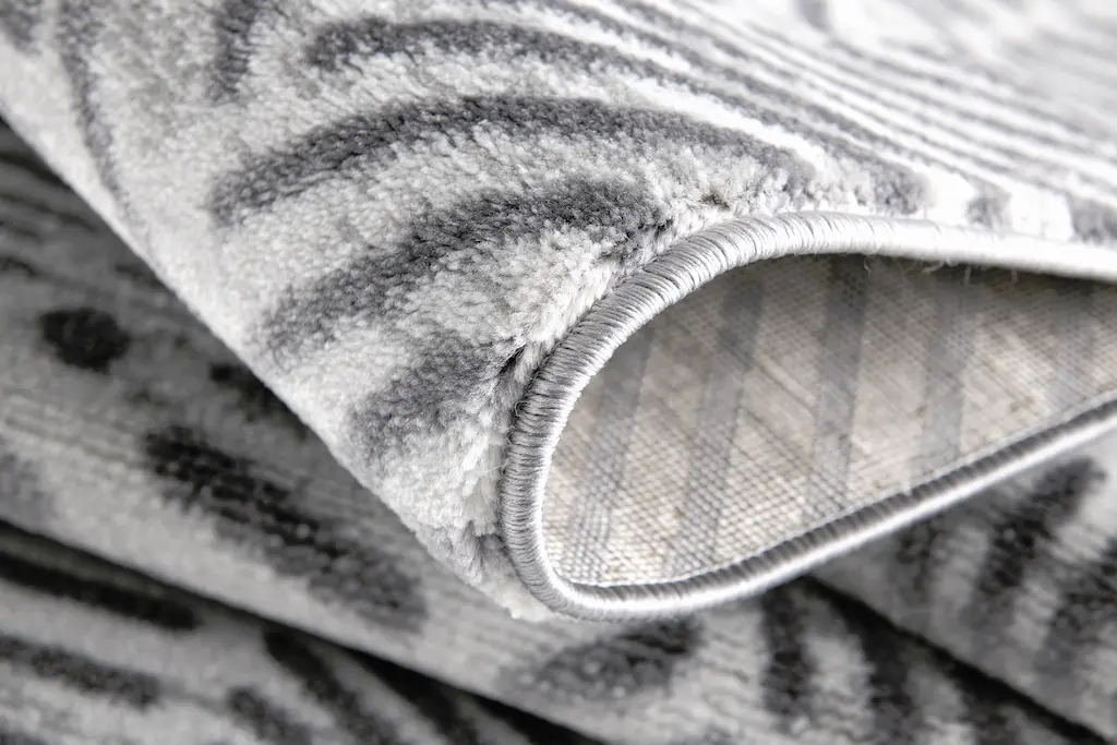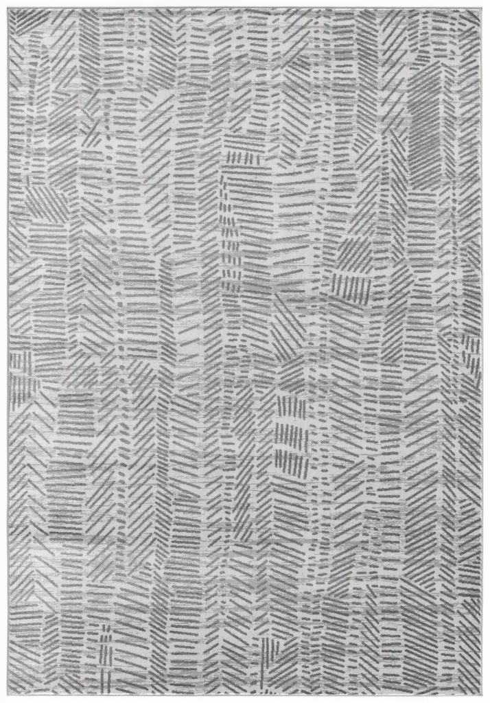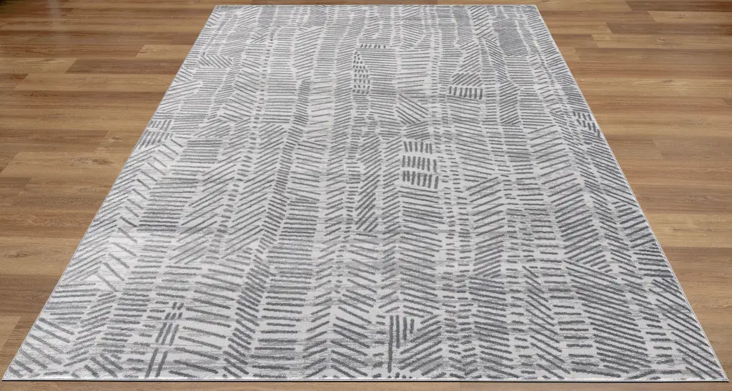 This elegant 7'8"x10'5" Rug-Kai Crosshatch Charcoal is perfect for any contemporary living room. With a low pile and made of fiber with secondary materials of cotton and polypropylene, it's easy to clean and maintain. Its grey color adds a modern touch to any home décor.