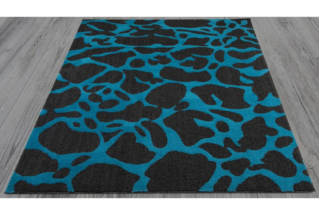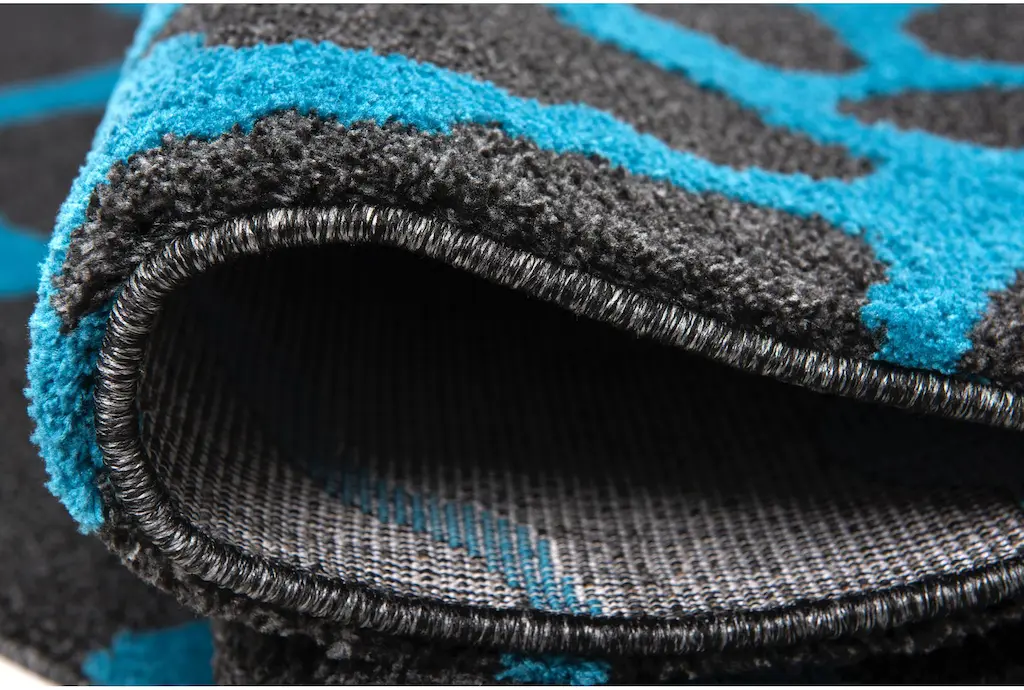 7'8"x10'5" Rug-Modern Spots Plush Pile Blue/black | Low Pile | Layering | Rectangle | Abstract