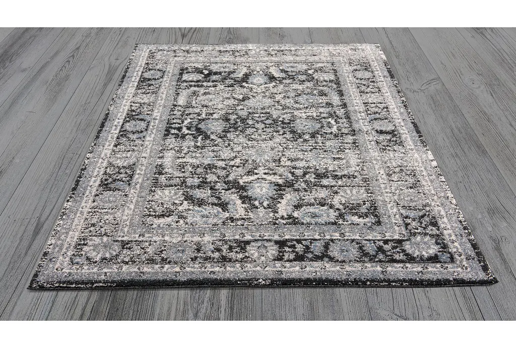 7'8"x10'5" Rug | Traditional Botanical Leaves Grey/black | Rectangle | Indoor | Low Pile | Layering