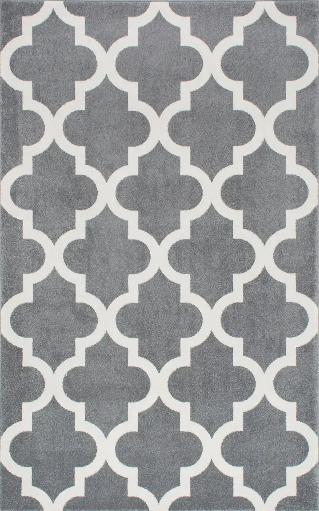 7'8"x10'8" Fiber Rug-Beverly Traditional Shag Quatrefoil Graphite | Lattice | Rectangle