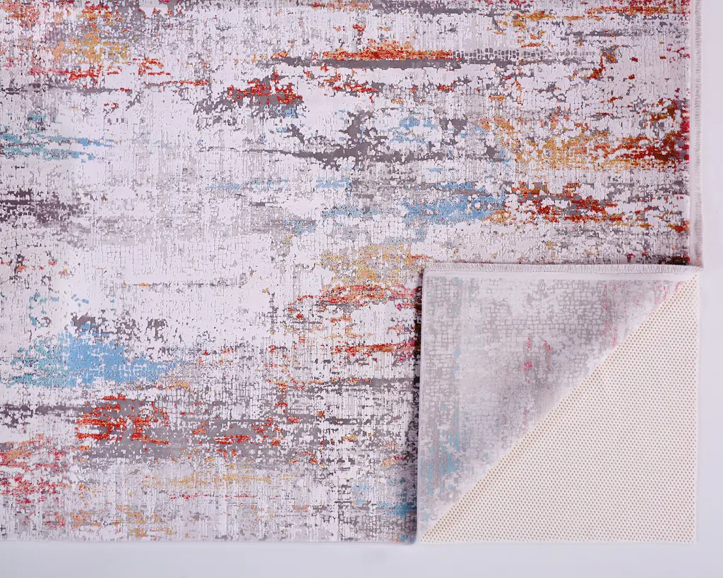 Enhance your living space with the 7'8"x11' Rug-Faux Bois Ivory/Red Fiber Cotton Rectangle Abstract Indoor | Low Pile. This contemporary rug introduces a captivating blend of colors with an acid-washed pattern that adds a unique touch to any room. Ideal for bedrooms, living rooms, and other indoor spaces, this rug combines style and function effortlessly.