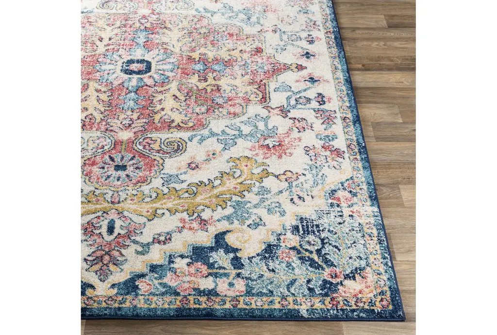 7'8"x7'8" Fiber Rug-Modern Sky Blue & Garnet Muted | Low Pile | Botanical | Square By Surya