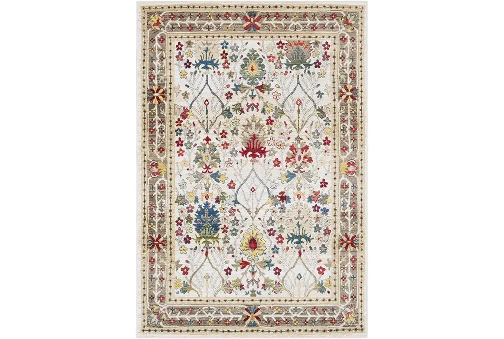 7'8"x9'8" Fiber Rug-Traditional Botanical Multicolor | Low Pile | Rectangle By Surya