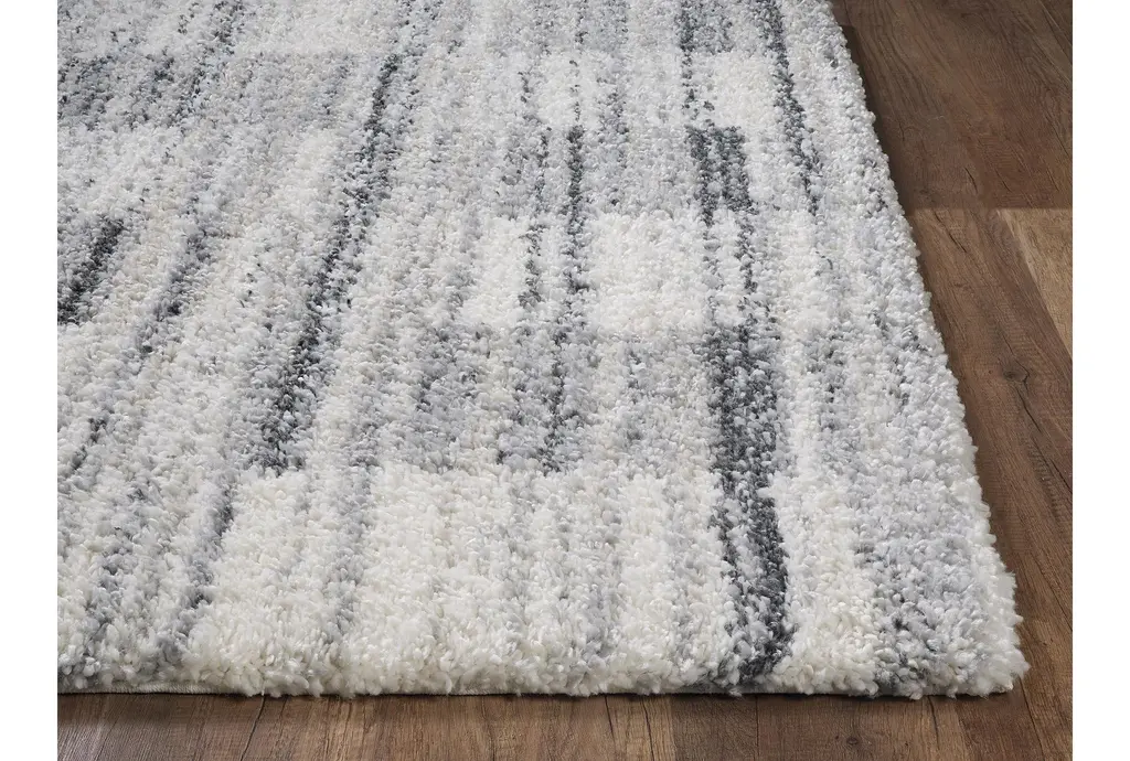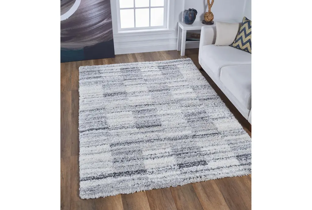 7'8"x9'8" Fiber Rug-Modern Ombre Grid Shag Grey | Abstract | Rectangle