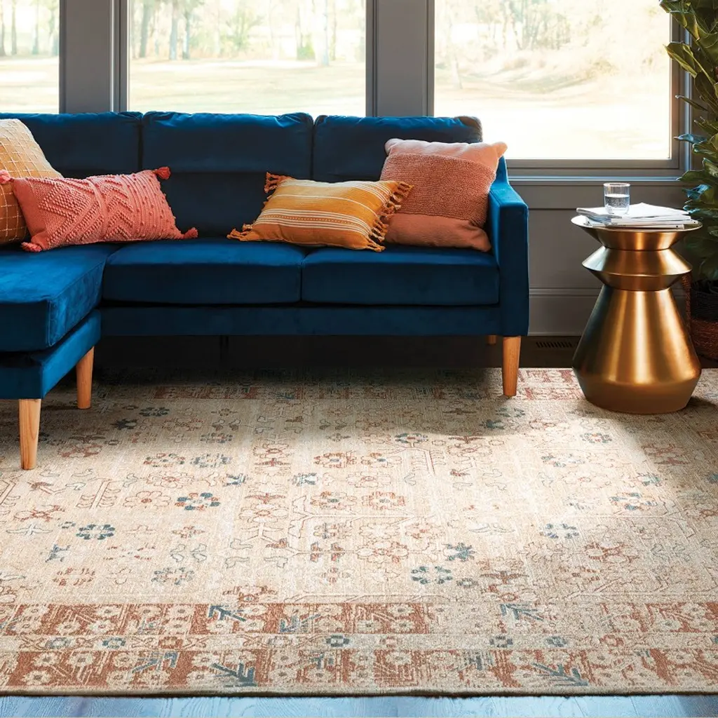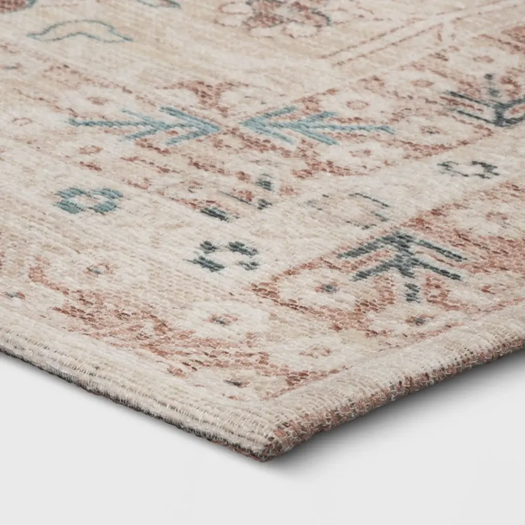 Refresh your flooring with this Border Flower Area Rug from Threshold™. The rectangular area rug is adorned with a floral pattern along with a matching bordered design in warm shades to add a touch of rustic style to your decor. Designed for indoor use, the woven rug is made from 100% polyester with a low pile height, making it perfect for high-traffic areas like your living room, hallway or entryway.Threshold™: Looks like home, feels like you.