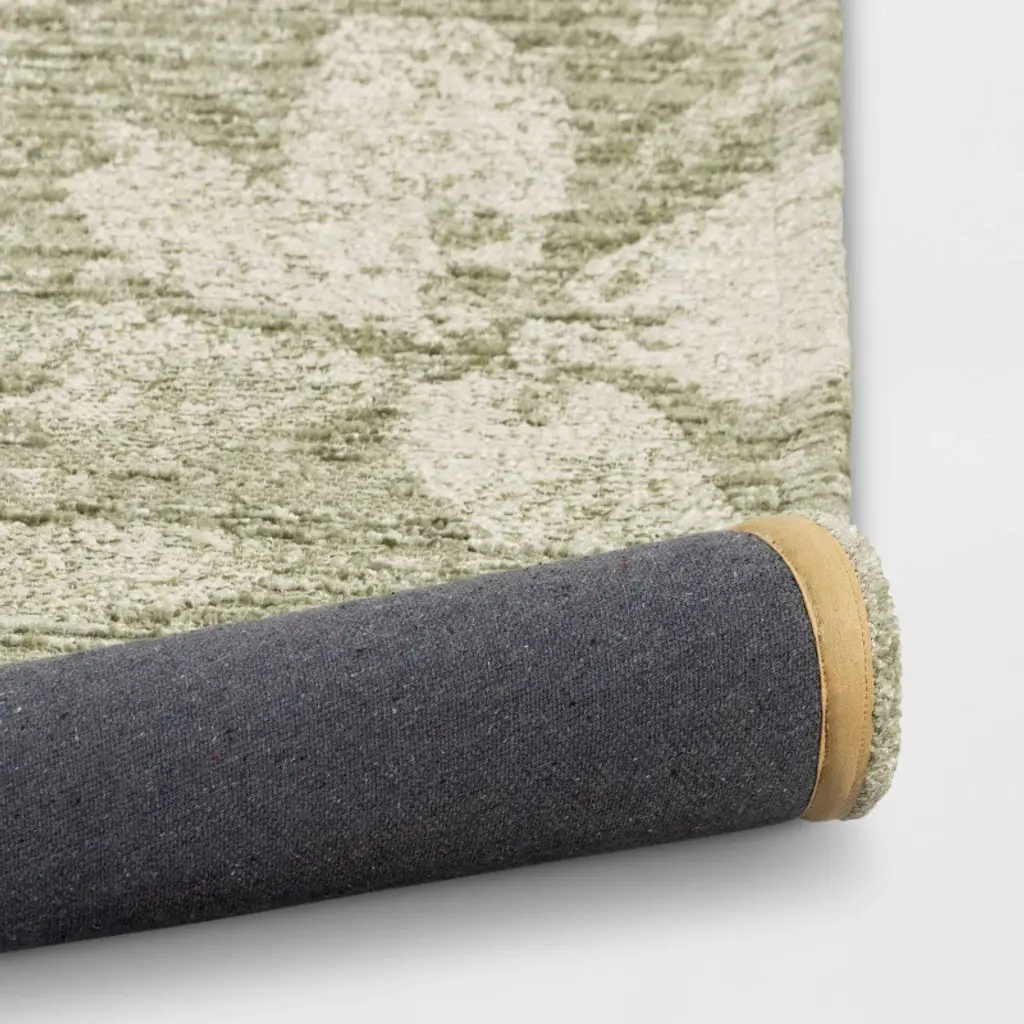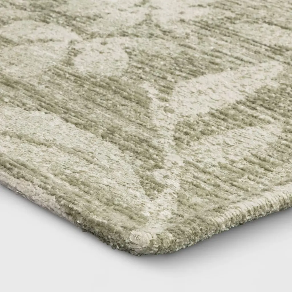 Add a welcoming vibe to your floor with this Botanical Flatweave Area Rug from Threshold™. This rectangular accent rug is adorned with a seamless floral-and-foliage pattern in a cream color against a light green backdrop for a charming look. Designed for indoor use, the soft flatweave rug is made from 100% polyester with a low pile height and 100% cotton backing, making it perfect for high-traffic areas like your living room, hallway or entryway.Threshold™: Looks like home, feels like you.