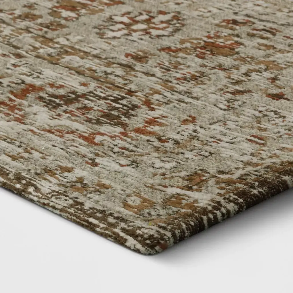7'x10' Oakton Jacquard Chenille Area Rug Rust - Threshold™: Traditional Floral Wool & Polyester, Low Pile Indoor Rug
