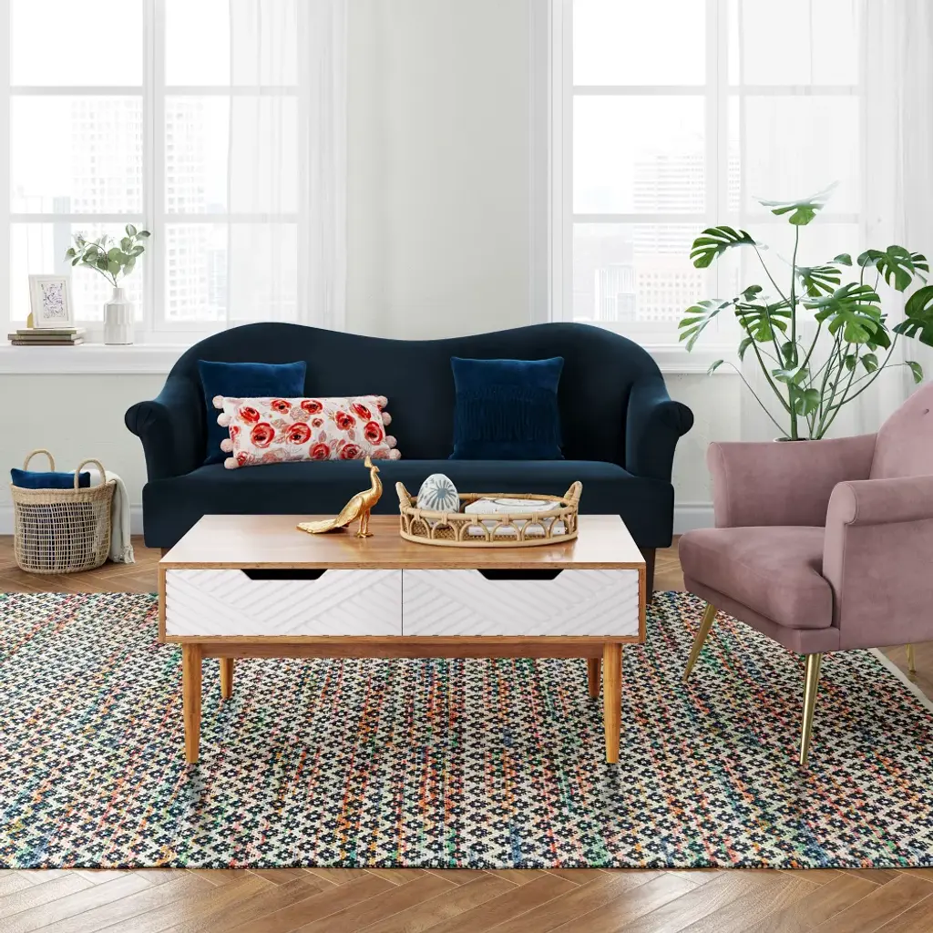Make your space more welcoming with this Blue Striped Diamond Woven Area Rug from Threshold™ designed with Studio McGee. This handmade area rug is a great indoor accent. It showcases a woven striped diamond pattern for casual texture and visual appeal. The wool and cotton construction adds comfort and warmth to your flooring for a great feel underfoot. Plus, it has a flat pile height that's perfect for frequently used areas like your living room, hallway or entryway. Meet Shea McGee, the designer and stylist behind the brand Studio McGee. Founded alongside her husband, Syd, the studio is known for Shea’s design of beautifully elevated spaces that encourage clients to surround themselves with the things and people they love. Now she’s partnering with Threshold to offer Studio McGee’s classic design in a new collection for inspired homes, everywhere. Goodweave certified
