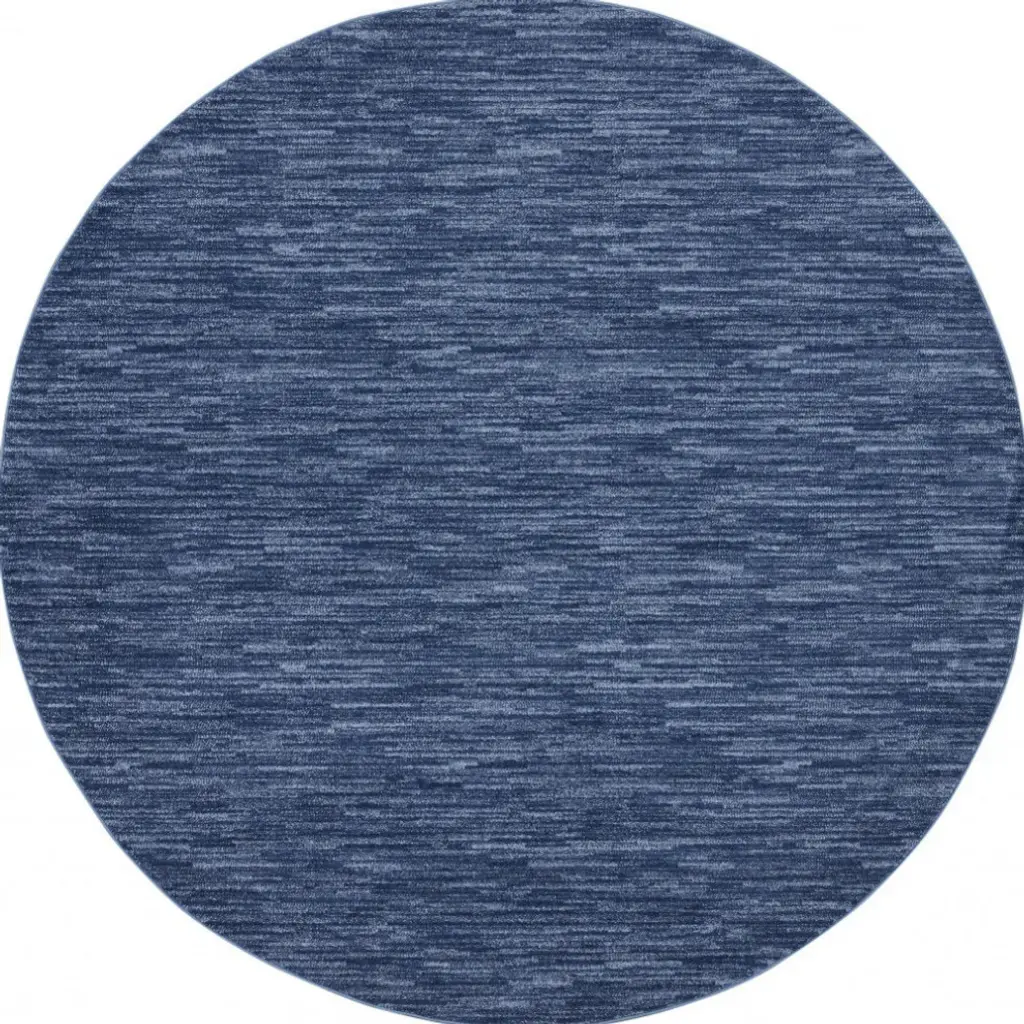 Elevate your living area with this 8-foot x 8-foot blue indoor outdoor area rug. Crafted using machine-woven technique, this circular rug flaunts a variegated blue coloration that includes navy and lighter blues as well that will be a great way to accent your space. The versatile blue color effortlessly complements a variety of d̩cor styles, making it a perfect addition to your indoor space, patio, or deck. 96-inch H x 96-inch W x 0.25-inch D
