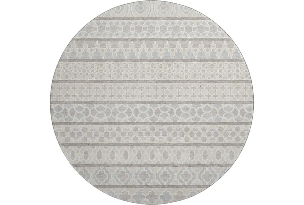 8' Round Rug-Neo Washable Persian Ivory | Machine Washable | Tufted | High Traffic | Stripe | Low Pile | Non Slip