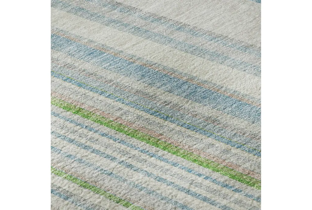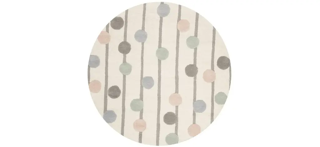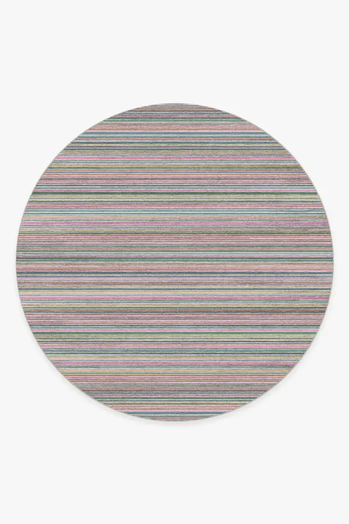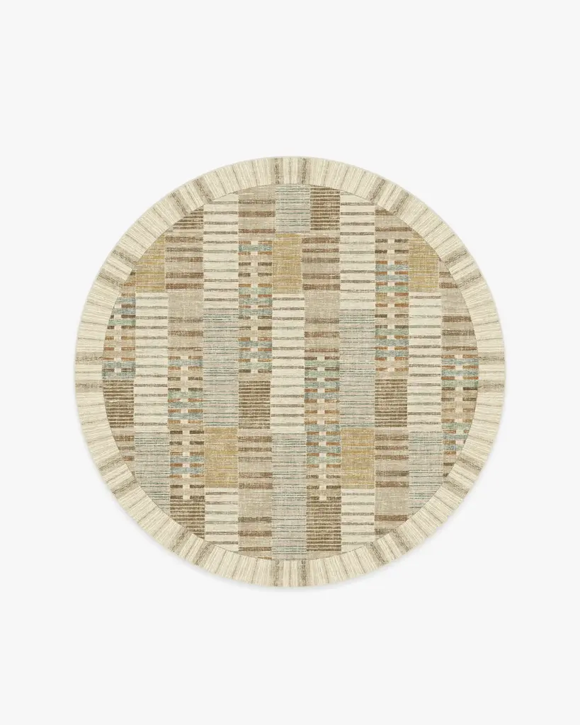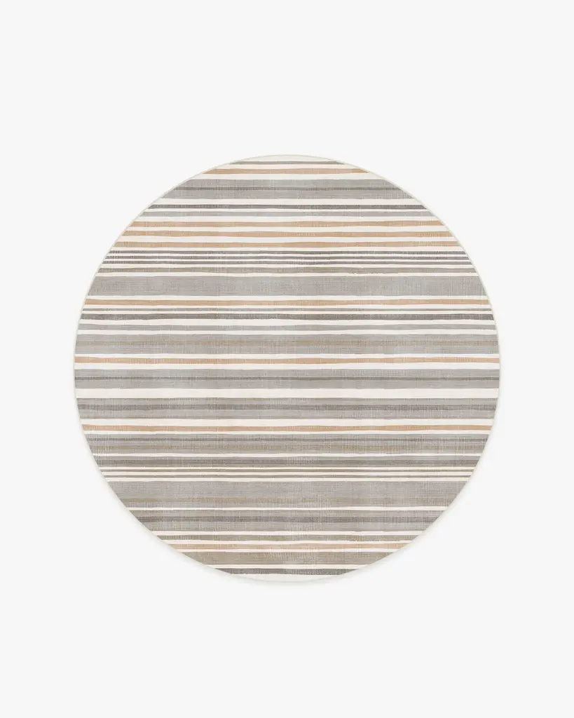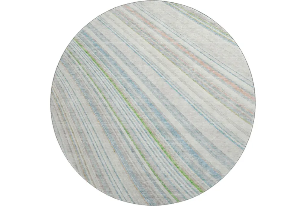 8' Washable Round Rug- Neo Rays Ivory | Machine Washable | Tufted | High Traffic | Stripe | Low Pile | Non Slip