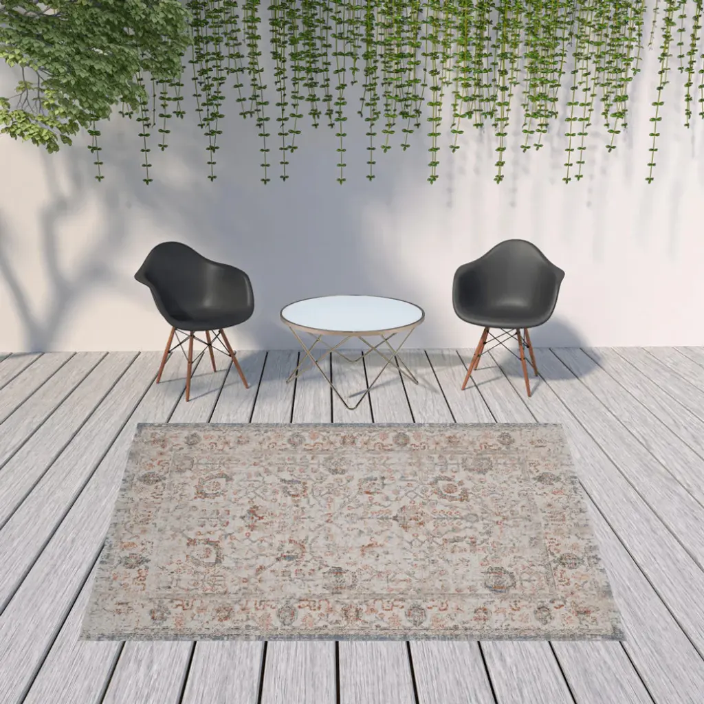 8' X 10' Beige Floral Stain Resistant Indoor Outdoor Area Rug