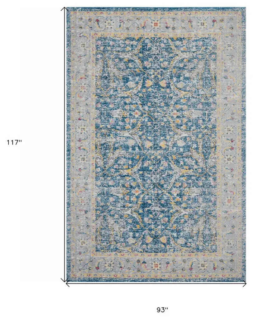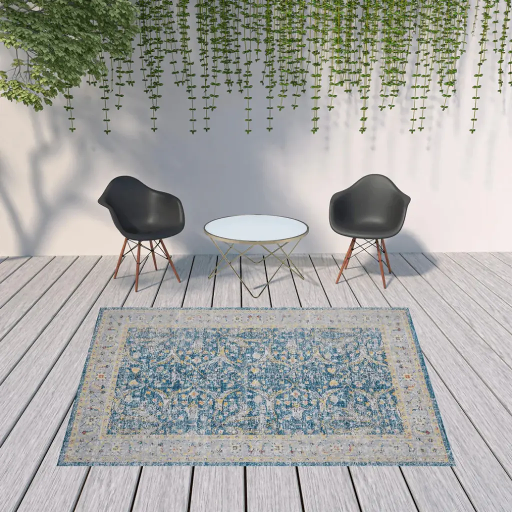 8' X 10' Blue Floral Stain Resistant Indoor Outdoor Area Rug