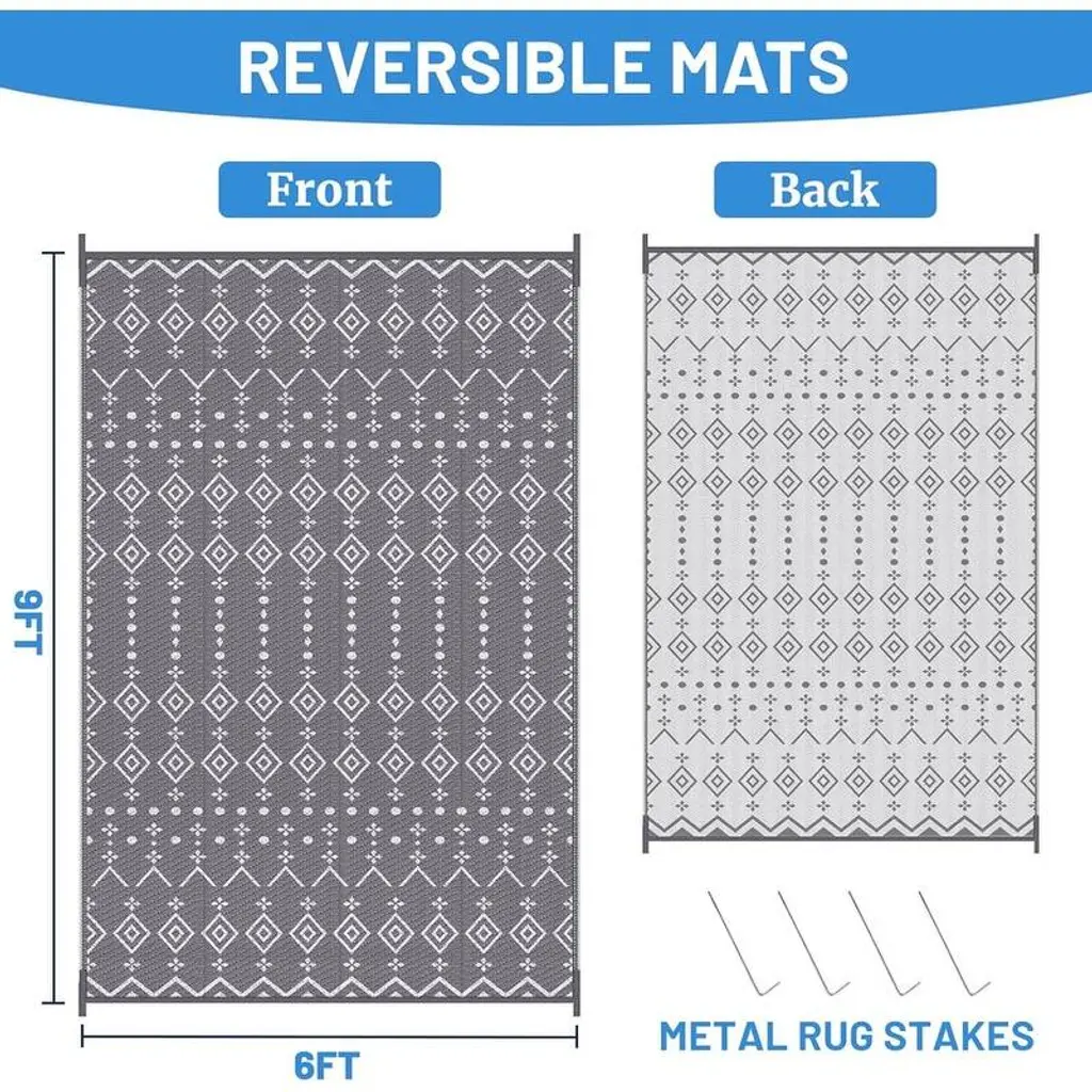 Durable Plastic Straw Weave – Lightweight yet strong for outdoor and indoor use Reversible Design – Flip for a fresh new look anytime to match your decor Waterproof & Easy to Clean – Resists moisture and wipes clean with a hose or cloth Portable & Foldable – Folds compactly for camping, RV trips, and outdoor events Versatile Use – Ideal for patios, decks, balconies, picnics, and backyard gatherings