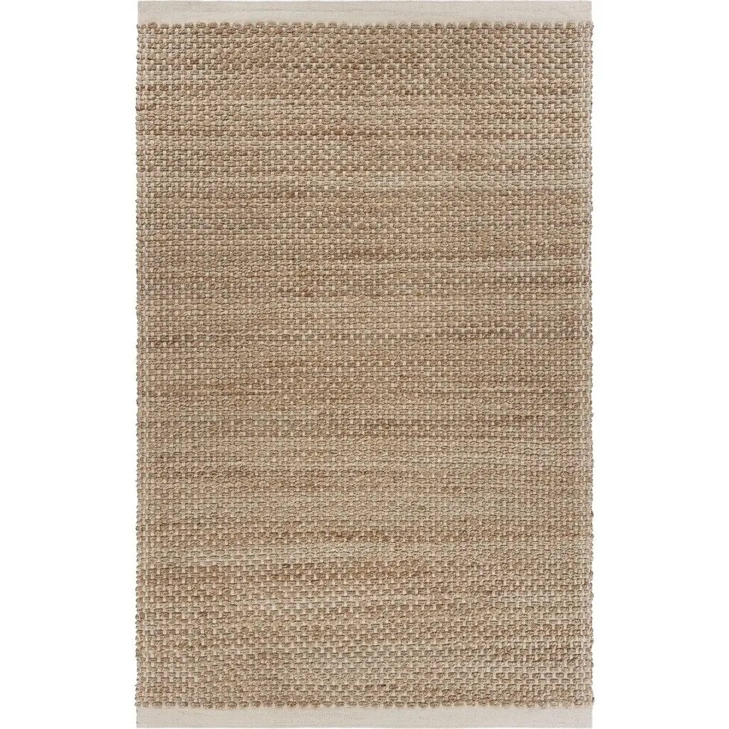 Showcasing a classic color tone to blend in with a range of interior settings, this Tan and White Detailed Woven Area Rug will add a sense of warmth and character to your home. The weaving details in shades of tan over a white background offer utmost simplicity while emitting a subtle countryside tone for a relaxed vibe. Hand-loomed with jute and cotton mix in a low pile construction for enhanced durability and softness, making it ideal for high-traffic areas of the home. The surface texture adds a layer of warmth under the feet providing a cozy and inviting feel. You can place this versatile area rug in your dining area, kitchen, or foyer and it will effortlessly blend in without overwhelming its surrounding. 93" x 117" x 0.4"