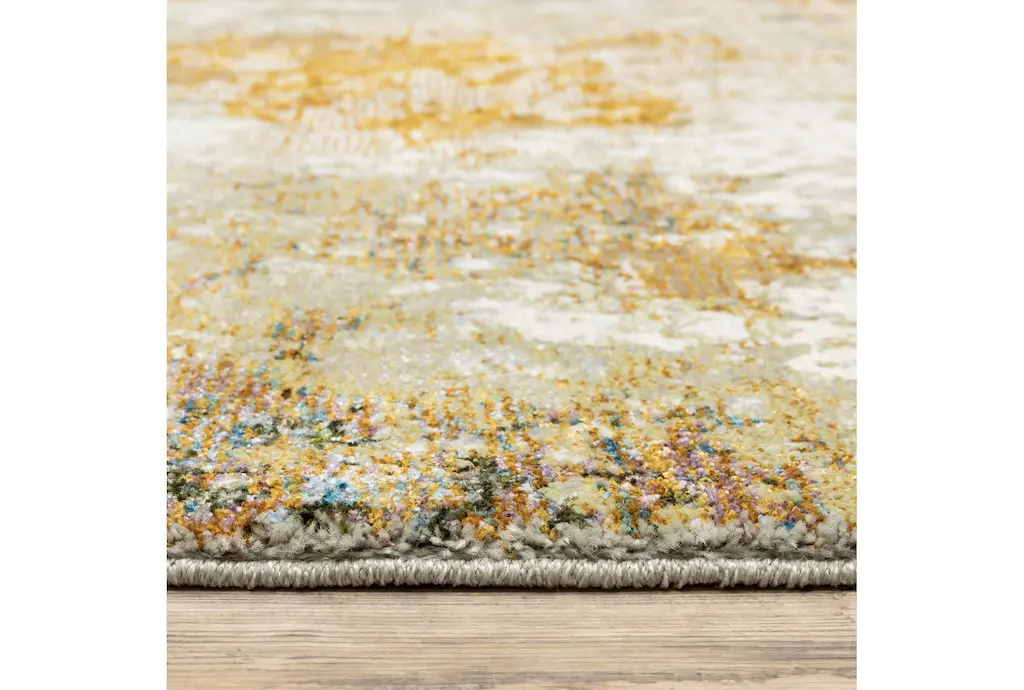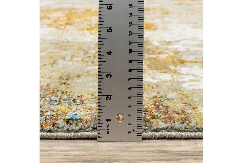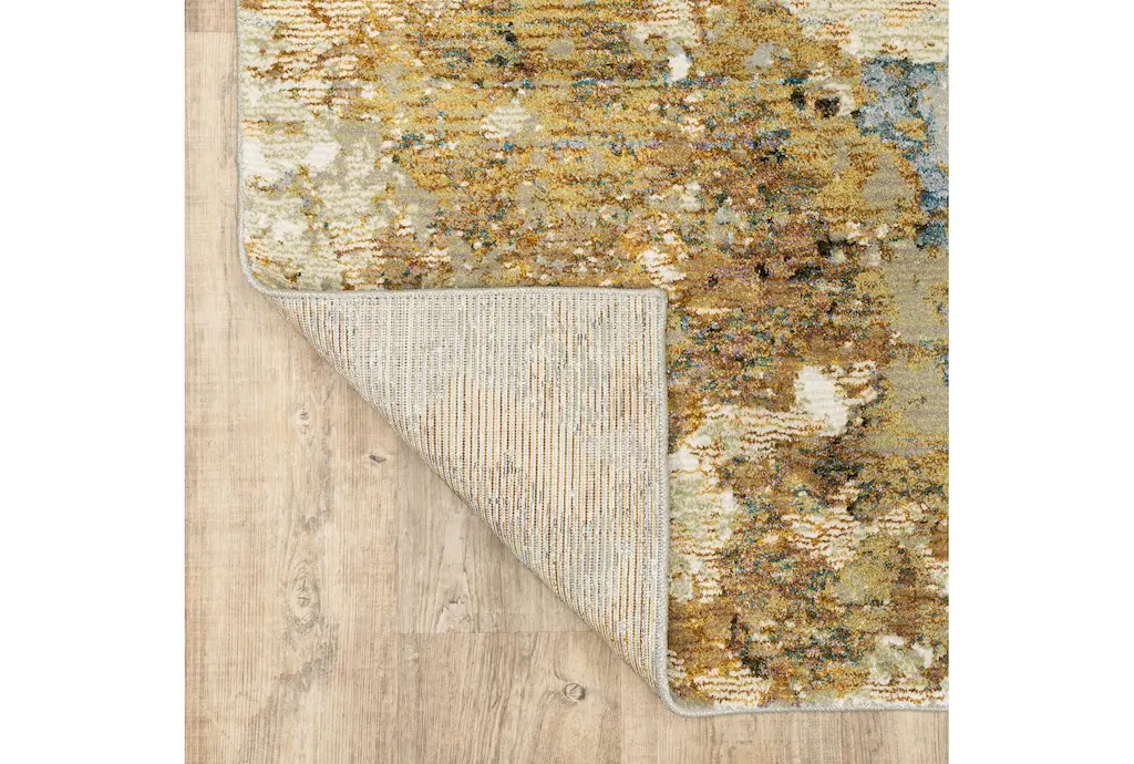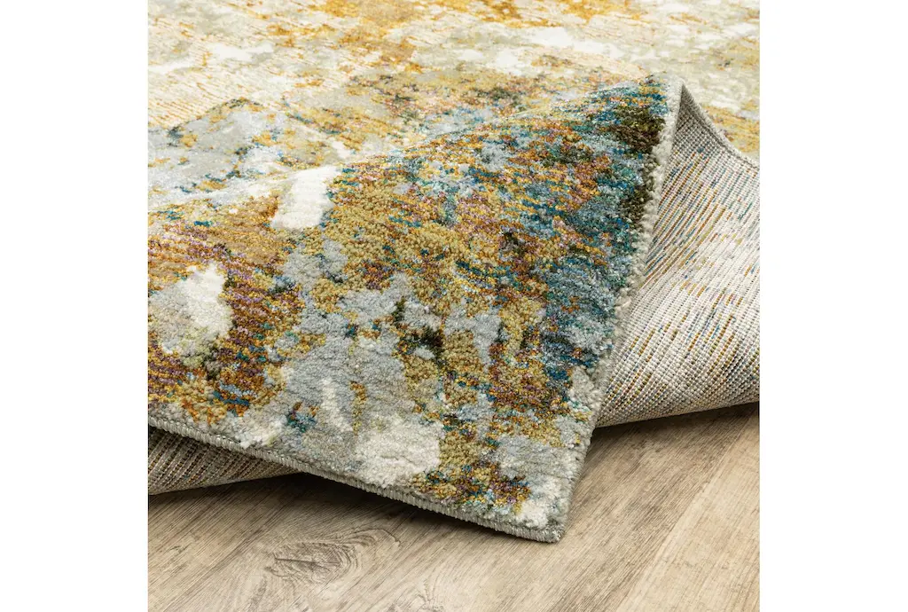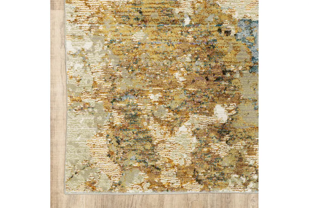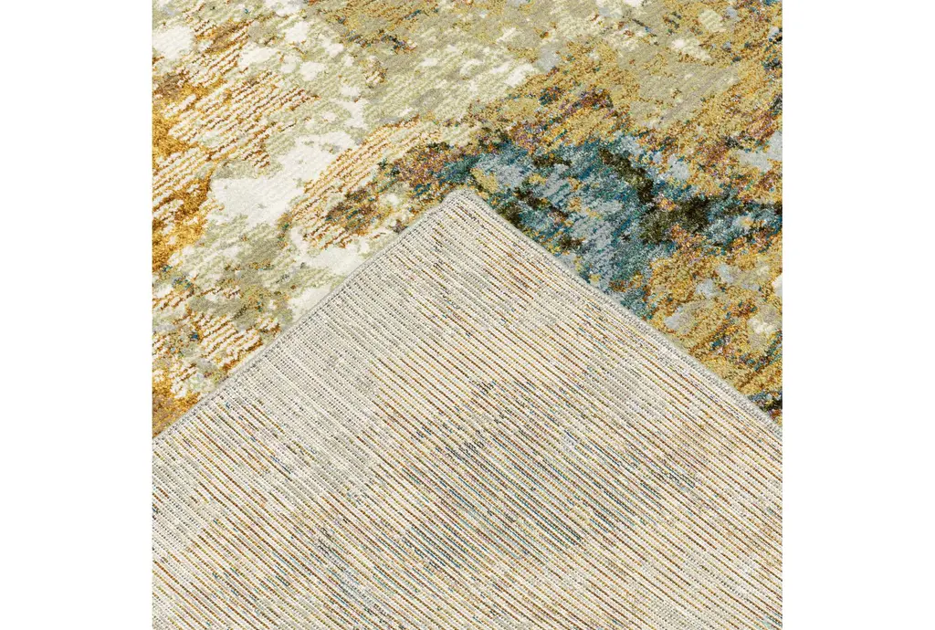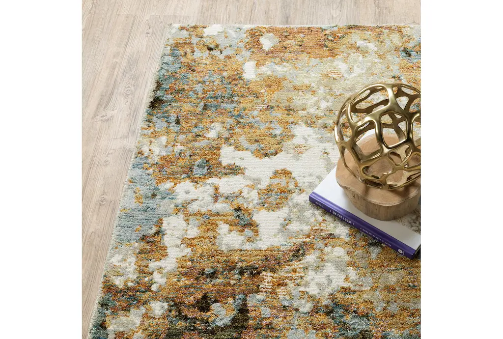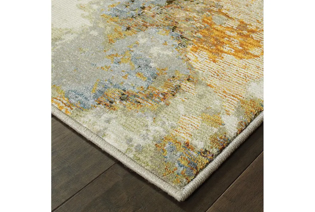 Elevate your living space with the 8'5"x11'6" Fiber Rug-Marshall Canary in a captivating abstract design. This contemporary rug is perfect for adding a touch of sophistication to any room with its vibrant gold tones and multicolor accents. Made from durable nylon and polypropylene, this rug is designed to withstand high-traffic areas while maintaining its beauty.