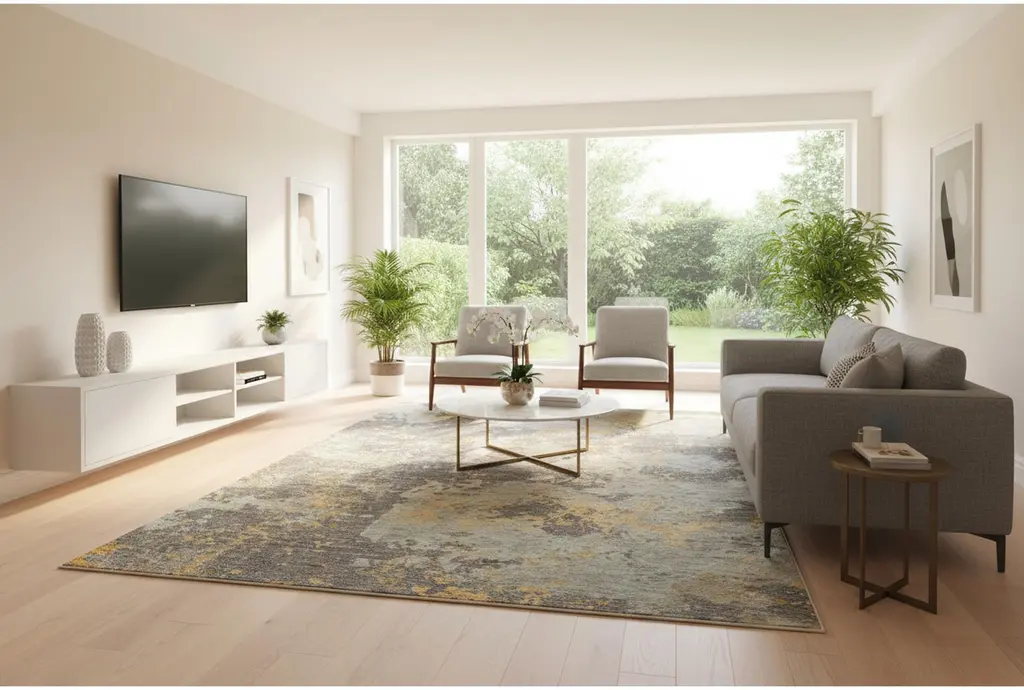 Bring a touch of contemporary style to your living room with the 8'5"x11'6" Fiber Rug-Marshall Slate Butter Rectangle Abstract Indoor. This multi-color rug features an acid-washed pattern that adds a modern and artistic element to any indoor space. Made from a durable blend of nylon and polypropylene, it is designed to withstand the demands of everyday use.