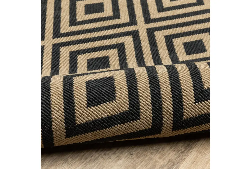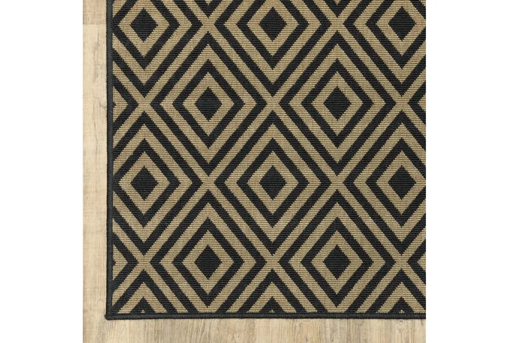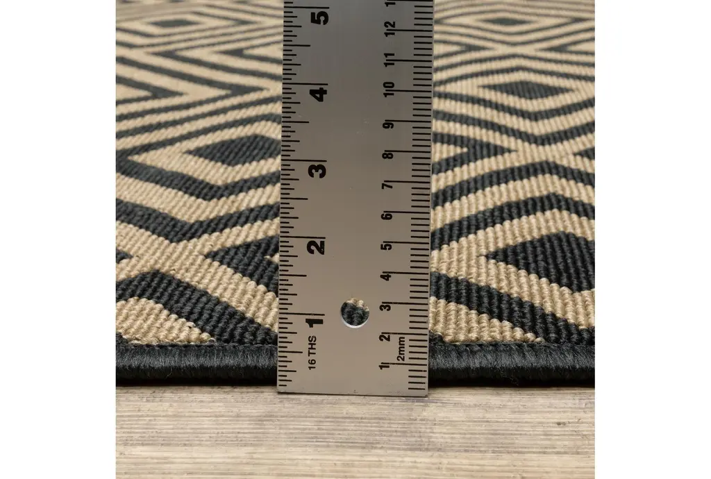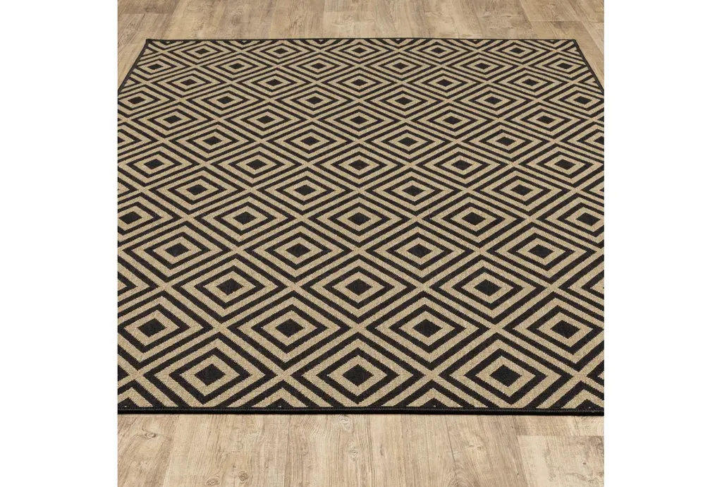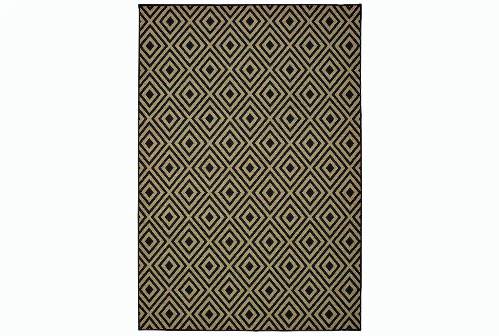 8'5"x13'1" Fiber Indoor/outdoor Rug-Black/tan Diamonds | Rectangle