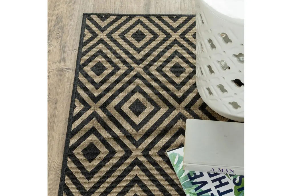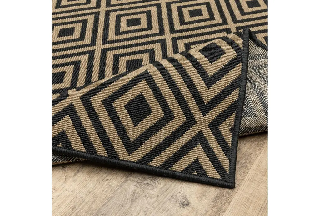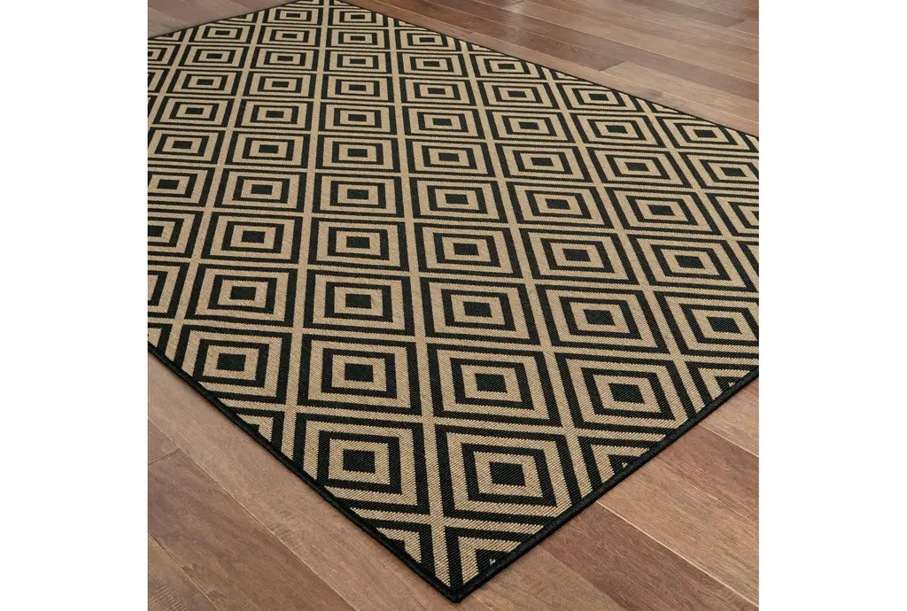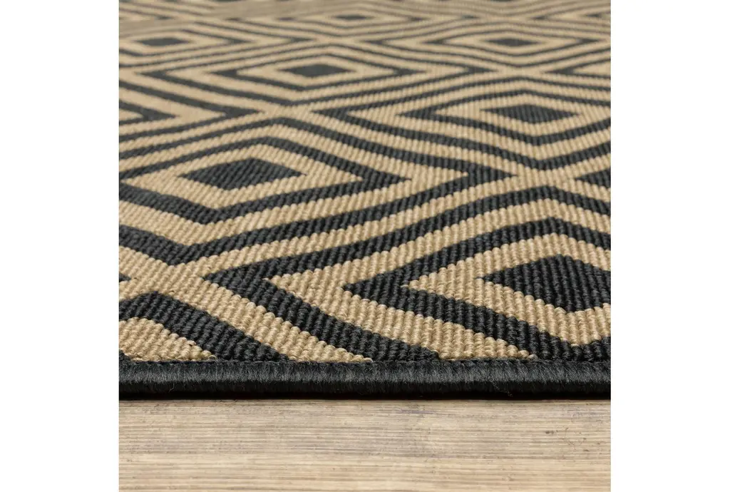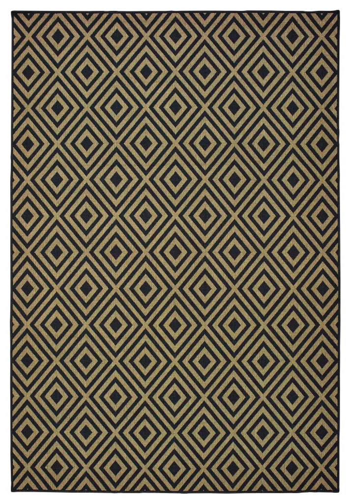 8'5"x13'1" Fiber Indoor/outdoor Rug-Black/tan Diamonds | Rectangle
