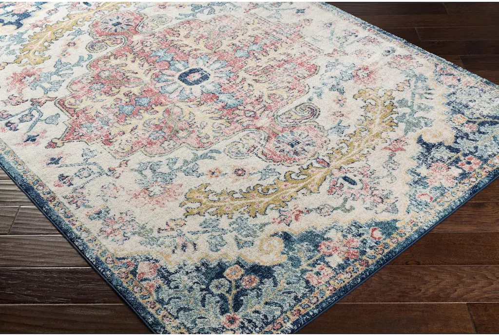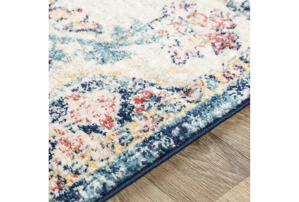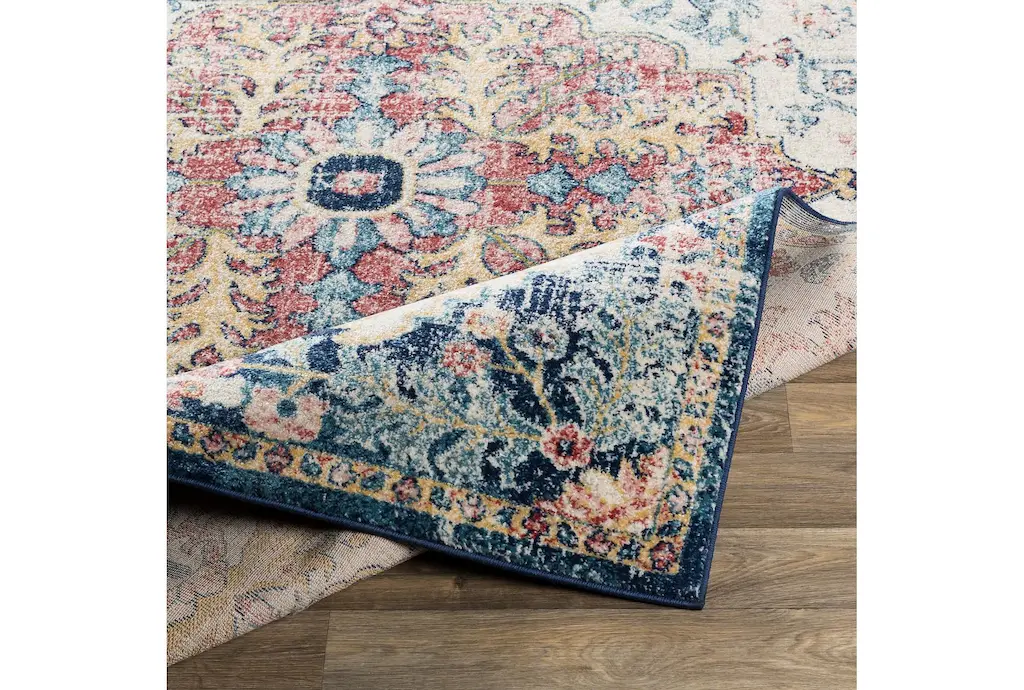 8'8"x12' Fiber Rug-Sky Blue & Garnet Muted | Low Pile | Rectangle | Botanical By Surya