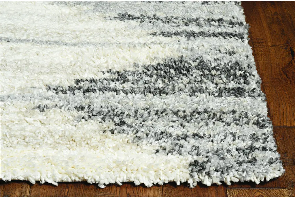 Introducing the 8'8" x 13' Rug-Lucia Shag in grey fiber, designed to bring modern style to any living space. The geometric pattern and neutral grey and ivory colors make it a versatile addition to your home decor. Crafted from durable polypropylene, this indoor rug offers both comfort and practicality.