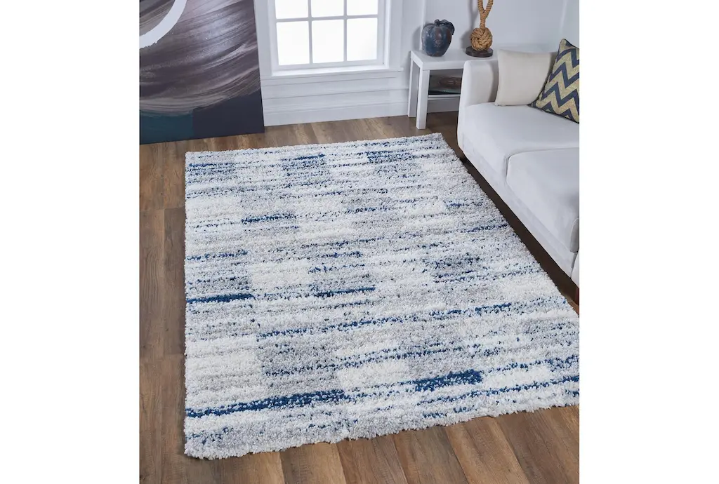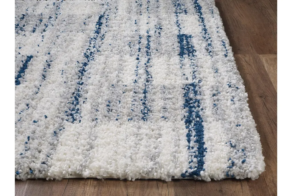 8'8"x13' Rug-Ombre Grid Shag Blue Fiber Rectangle Abstract Indoor