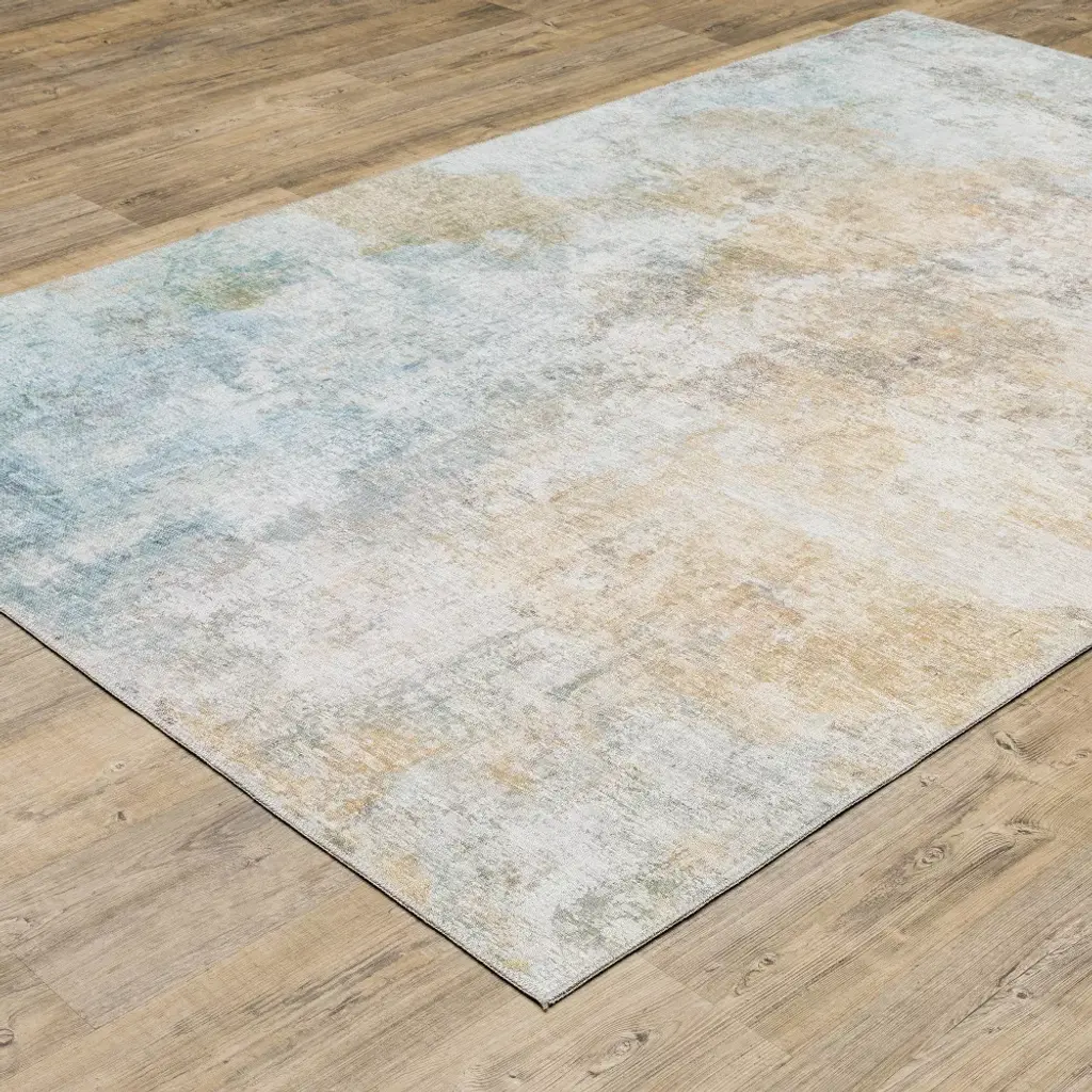 8'9"x12' Marcel Muted Abstract Area Rug Yellow/blue - Captiv8e Designs: Contemporary, Fade & Stain-resistant, Indoor Use