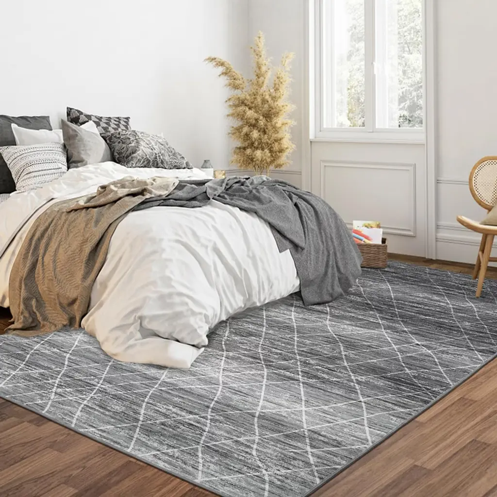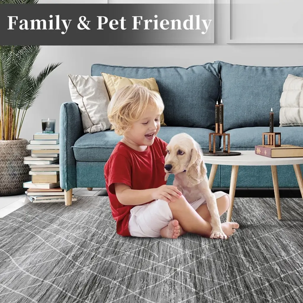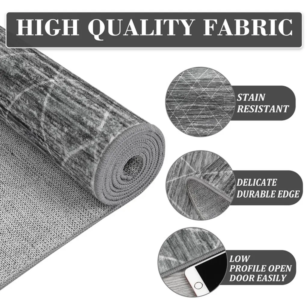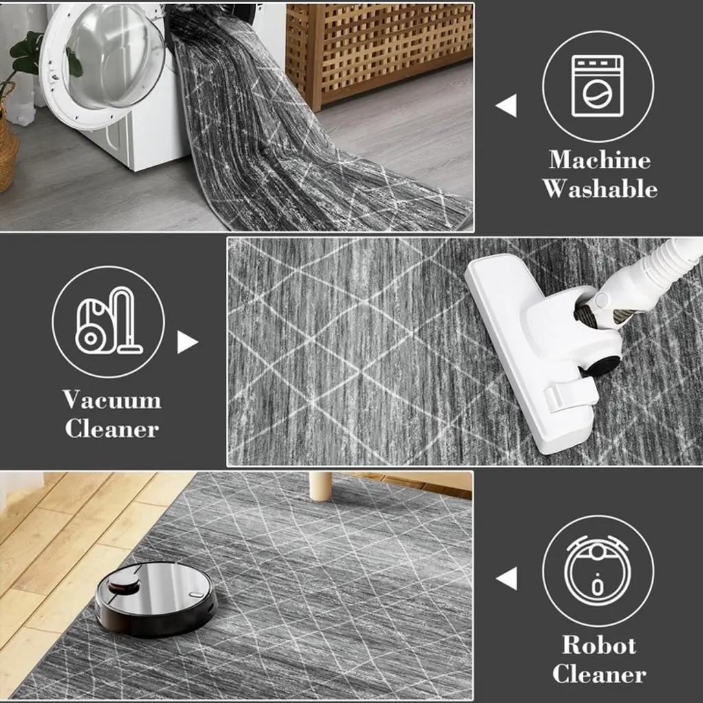 Washable Rugs for Living Room, Non-Slip Modern Area Rugs for Bedroom1. Effortless Machine Washable MaintenanceExperience ultimate cleaning convenience with this fully machine washable rug. Designed to withstand regular washing cycles without fading or damage, it allows for thorough cleaning whenever needed. For daily upkeep, simply blot spills promptly with a clean cloth. This feature makes it ideal for busy households where quick and easy maintenance is essential.2. Advanced Non-Slip Safety BackingEquipped with an upgraded TPR (Thermoplastic Rubber) backing, this rug provides exceptional grip on various flooring surfaces. The high-traction backing prevents shifting, sliding, and bunching, ensuring secure placement in active areas. This safety feature makes it particularly suitable for entryways, living rooms, and kitchens where stable footing is crucial for all family members.3. Family and Pet-Friendly ConstructionCrafted from soft, durable polyester fibers combined with a sturdy TPR backing, this rug offers a safe surface for children and pets. The non-slip properties prevent accidental trips and falls, while the durable materials resist wear from daily activities, pet claws, and playful interactions. The hypoallergenic properties make it suitable for sensitive family members as well.4. Contemporary Styling with Flexible UsageFeaturing a modern color palette and minimalist design, this rug seamlessly complements various decor styles from contemporary to transitional. Its foldable and lightweight design allows for easy repositioning, seasonal changes, or convenient storage. The versatile appearance makes it suitable for multiple spaces including living rooms, bedrooms, kitchens, and dorm rooms.5. Simple Wrinkle Resolution MethodShould the rug arrive with packaging creases, a simple solution quickly restores its appearance. Lightly spray water on the affected areas and either lay the rug flat or hang it face down. The wrinkles will naturally disappear within a few days, revealing a smooth, flawless surface ready for immediate use in your home.Specifications:• Material: Premium polyester fibers with TPR backing• Backing Type: Upgraded non-slip TPR rubber• Care Instructions: Machine washable, spot cleanable• Design: Modern contemporary patterns• Properties: Hypoallergenic, fade-resistant• Feature: Foldable and lightweight for easy handling• Safety: Non-slip secure placement
