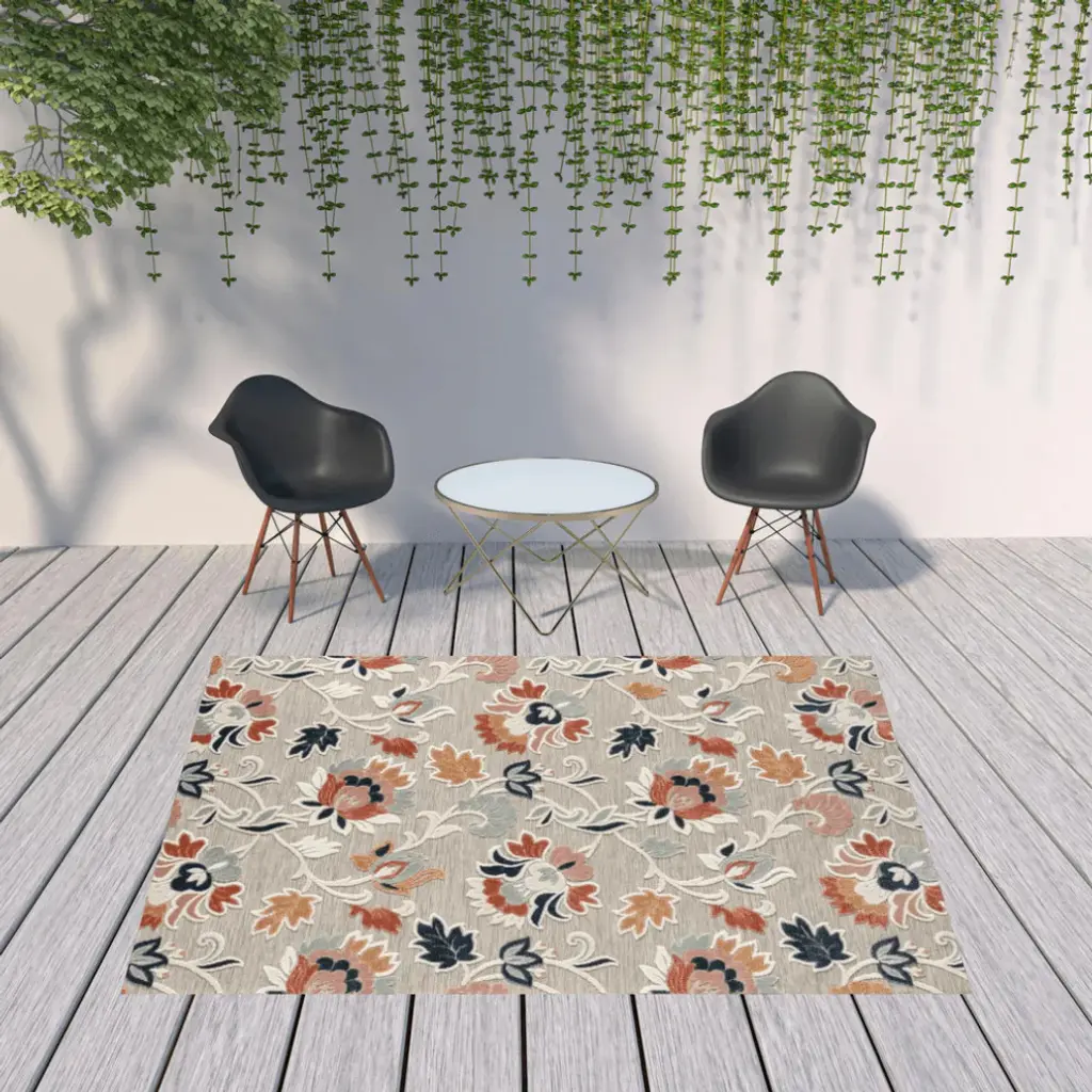 8'x10' Blue And Gray Floral Stain Resistant Indoor Outdoor Area Rug