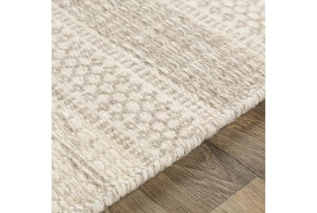 Bring a touch of rustic charm to your living room with the 8'X10' Fabric Rug-Maisie Stripe Natural by Surya. The cream and taupe colors create a neutral, calming aesthetic that complements a variety of interior styles. Made from wool, this fabric rug offers both softness and durability, making it a perfect addition to your indoor space.