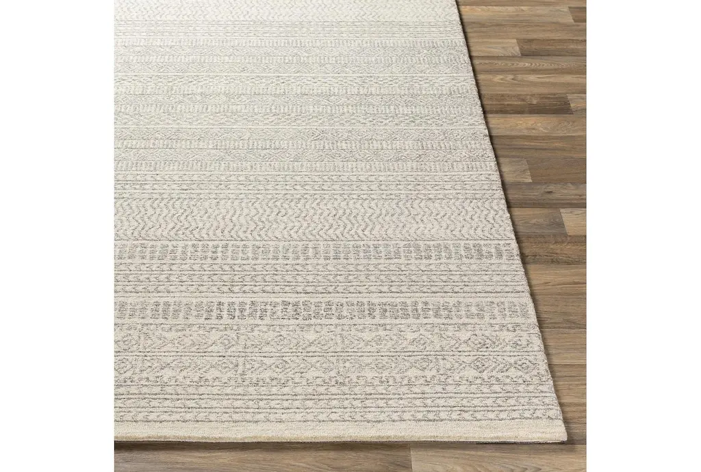Elevate your living space with the 8'x10' Fiber Rug by Surya, featuring a global cream striped chevron pattern. This modern rug combines a neutral palette of cream, camel, taupe, dark brown, and medium grey, making it a versatile addition to any interior. The low pile height ensures easy maintenance while providing a soft underfoot experience.