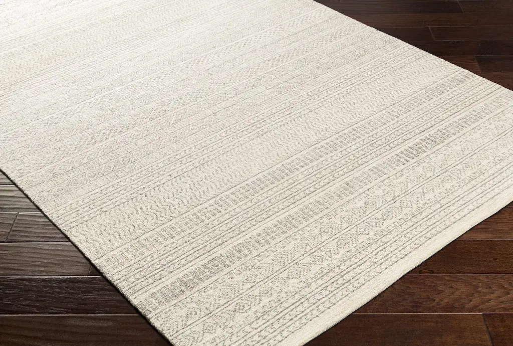 8'x10' Fiber Rug-Global Cream Striped Rectangle Chevron | Indoor | Low Pile By Surya