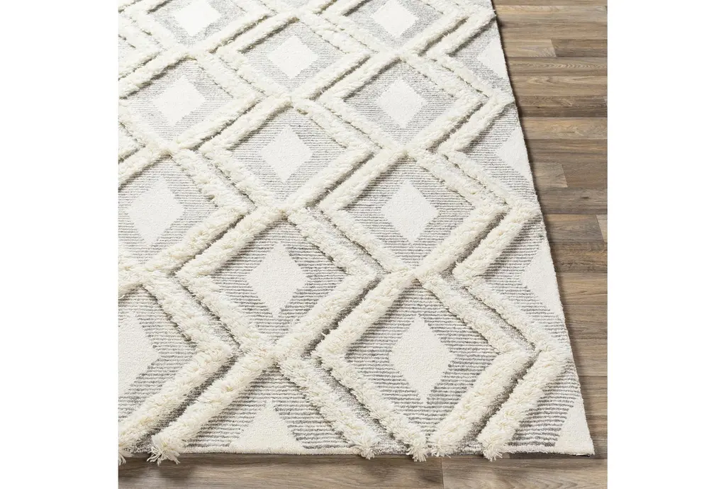 Enhance your living space with the 8'x10' Fiber Rug-Global High/Low Diamond Camel/Cream. This modern rug features a striking diamond pattern in camel and cream, adding a touch of sophistication to any room. Made from 100% wool, it offers both durability and comfort underfoot.