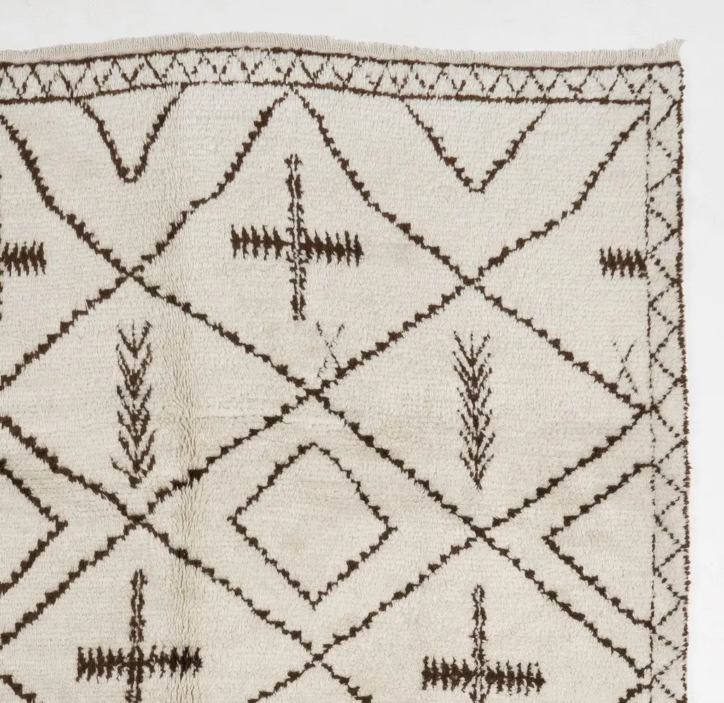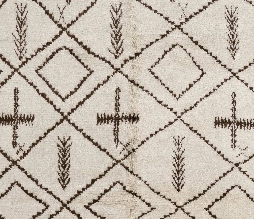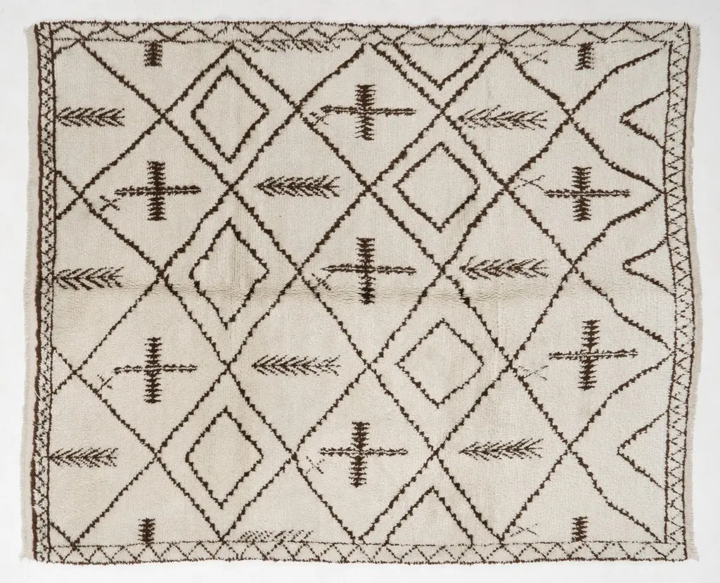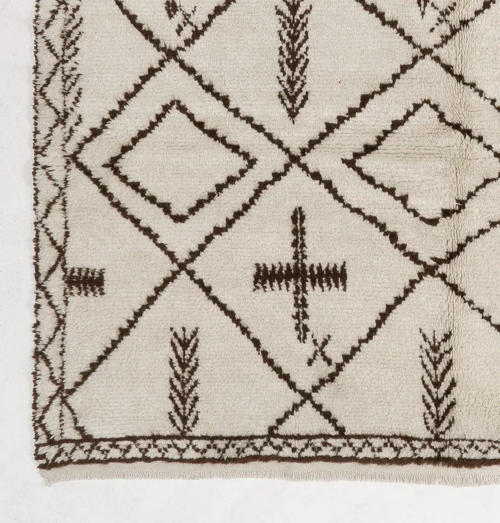 A new handmade Berber rug made of natural un-dyed sheep wool. The design is based on the Berber culture coming from Moroccan Symbolism.Soft, comfy pile that is ideal for families with kids. Available as it is or made to measure in any size, color combination and design requested.