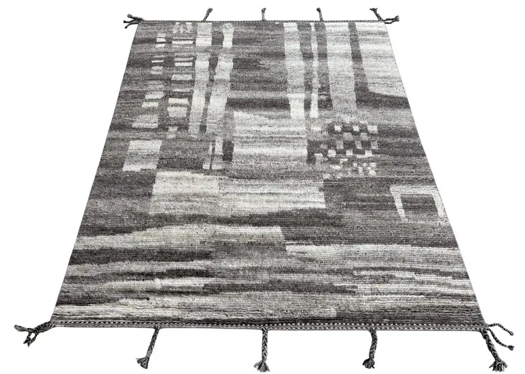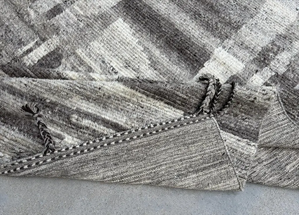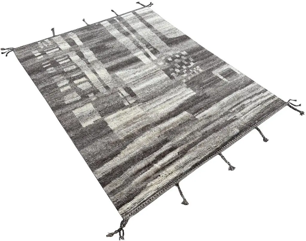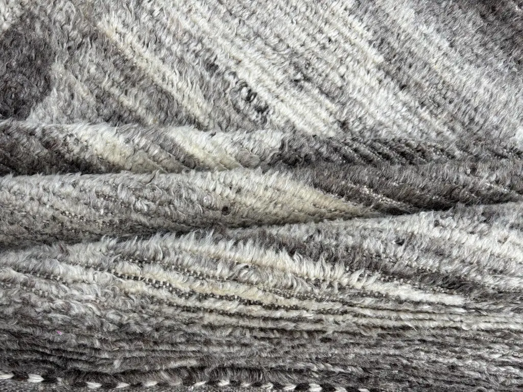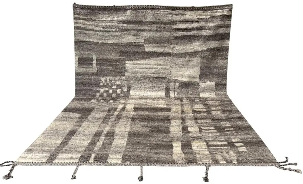 Elevate your living space with the exquisite charm of this new modern hand-knotted Moroccan berber beni ourain rug, crafted with precision and care from 100% wool. Combining the allure of Moroccan design with contemporary sensibilities, this rug is a striking addition to any home, offering both style and substance in equal measure.Each knot is meticulously handcrafted by skilled artisans, resulting in a texture that is both luxurious and resilient.Crafted entirely from wool, this Tulu rug offers warmth, softness, and durability, making it a practical and inviting choice for any room in your home. Whether placed in a living room, bedroom, or even a home office, this rug adds a touch of elegance and comfort to your space.As a new addition to your home, this modern Moroccan azilal style rug brings a fresh perspective to traditional craftsmanship. Its clean lines, contemporary design, and high-quality materials make it a versatile and timeless piece that will complement a wide range of interior styles.Elevate your decor with the modern sophistication of this hand-knotted Moroccan Tulu rug, where craftsmanship meets contemporary design to create a truly exceptional statement piece for your home.Size: 8 x 10 Ft (245 x 305 cm)Weaves: Hand-KnottedMaterials: 100% Natural WoolPile Height: MediumRoom: Any Room, Guestroom, Nursery, Kid's Room, Lounge, Living Room, Kitchen, Entryway, Salon, Trailer, Home Office / Study, Garage, Foyer, Dining Room, Conservatory, Bedroom, Basement, Utility/Laundry RoomAge: NewShape: RectangleType: Area Rug CUSTOM OPTIONS AVAILABLE Ref No: H048 Please inquire about wholesale pricing