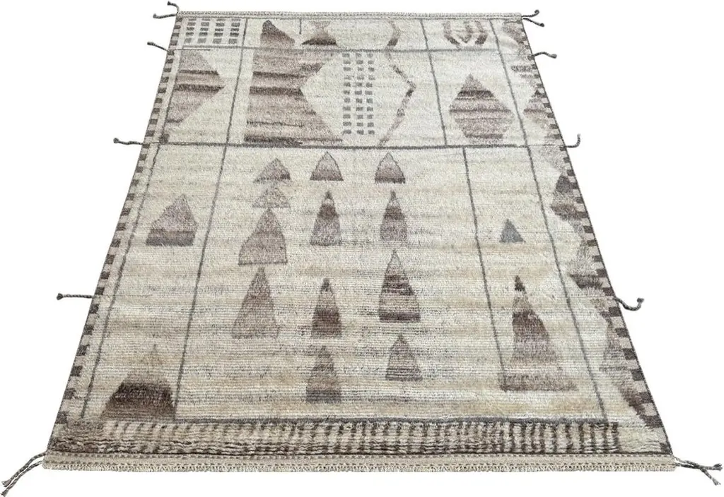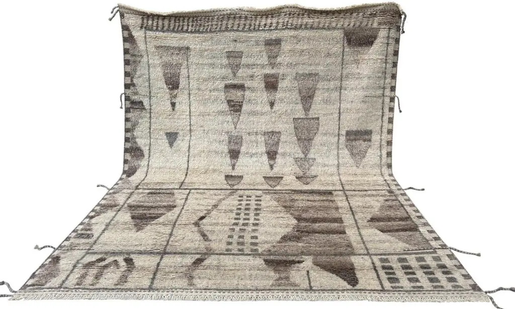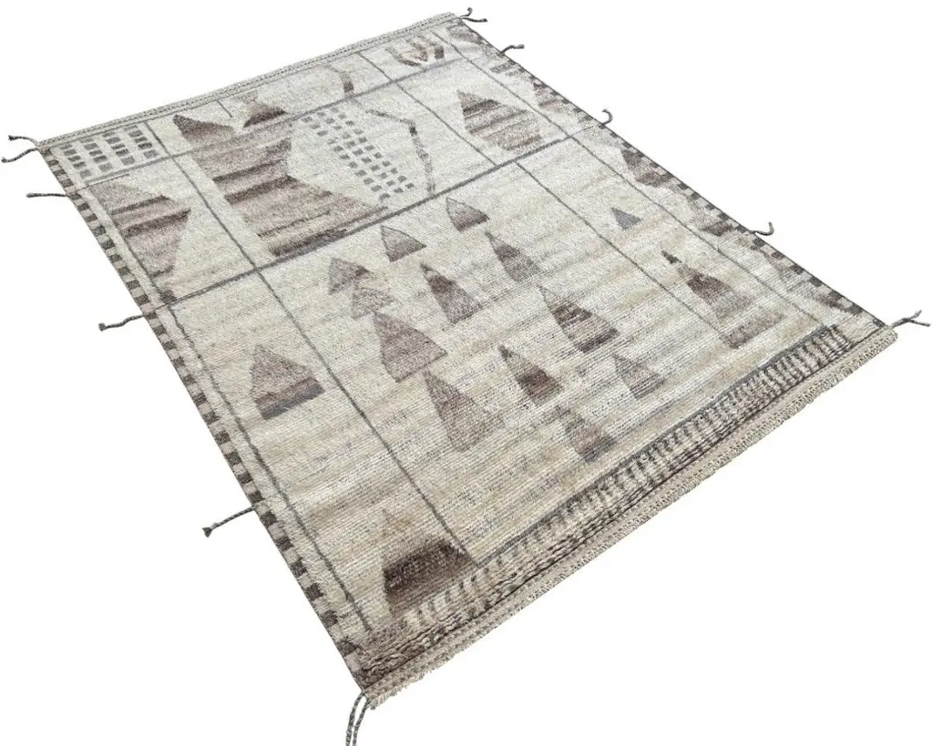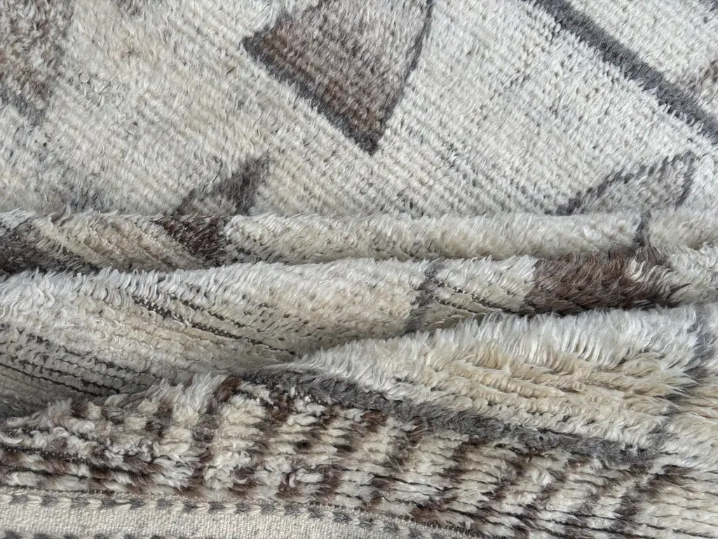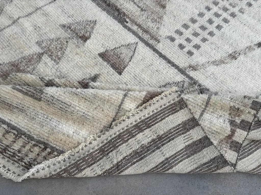 Elevate your living space with the exquisite charm of this new modern hand-knotted Moroccan berber beni ourain rug, crafted with precision and care from 100% wool. Combining the allure of Moroccan design with contemporary sensibilities, this rug is a striking addition to any home, offering both style and substance in equal measure.Each knot is meticulously handcrafted by skilled artisans, resulting in a texture that is both luxurious and resilient.Crafted entirely from wool, this Tulu rug offers warmth, softness, and durability, making it a practical and inviting choice for any room in your home. Whether placed in a living room, bedroom, or even a home office, this rug adds a touch of elegance and comfort to your space.As a new addition to your home, this modern Moroccan azilal style rug brings a fresh perspective to traditional craftsmanship. Its clean lines, contemporary design, and high-quality materials make it a versatile and timeless piece that will complement a wide range of interior styles.Elevate your decor with the modern sophistication of this hand-knotted Moroccan Tulu rug, where craftsmanship meets contemporary design to create a truly exceptional statement piece for your home.Size: 8 x 10 Ft (245 x 305 cm)Weaves: Hand-KnottedMaterials: 100% Natural WoolPile Height: MediumRoom: Any Room, Guestroom, Nursery, Kid's Room, Lounge, Living Room, Kitchen, Entryway, Salon, Trailer, Home Office / Study, Garage, Foyer, Dining Room, Conservatory, Bedroom, Basement, Utility/Laundry RoomAge: NewShape: RectangleType: Area Rug CUSTOM OPTIONS AVAILABLE Ref No: H032 Please inquire about wholesale pricing