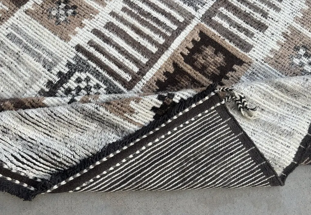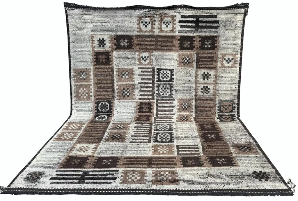 8X10 Ft Modern Moroccan Design Berber Rug. All Wool. Handmade Beni Ourain Carpet