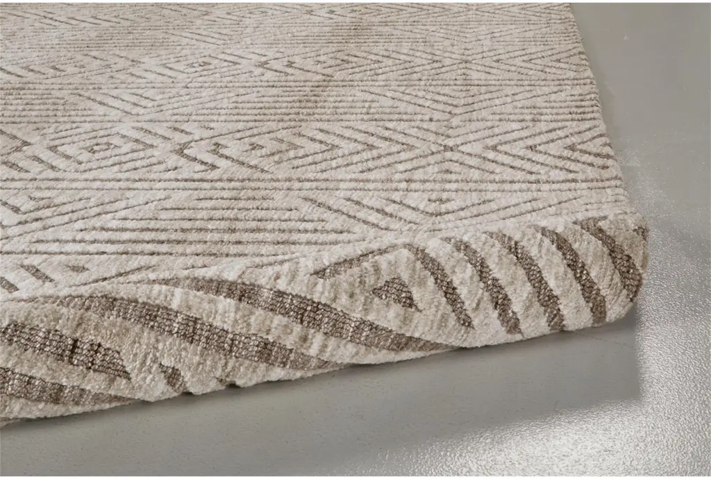 Bring warmth and texture to your living room with the 8'x10' Rug Cotton Micro Fiber Geometric Brown Rectangle. This rustic rug features a geometric design in a versatile brown color, making it a perfect addition to any indoor space. The low pile offers a soft feel underfoot while being easy to maintain.