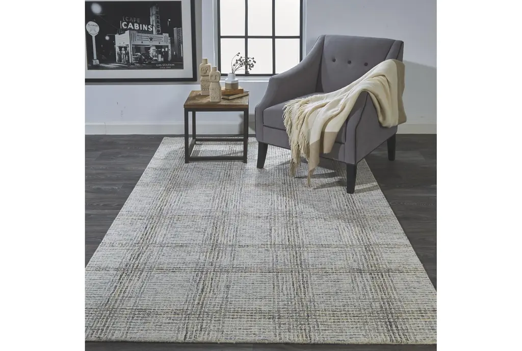 8'x10' Rug-Large Wool Grid Ivory/grey | Low Pile | Geometric | Rectangle