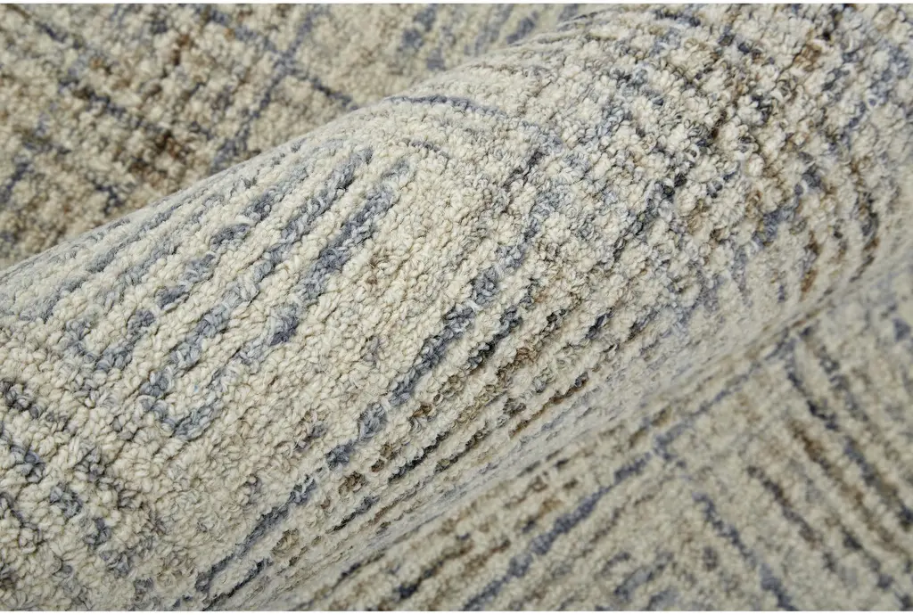 Enhance your living space with the 8'x10' Rug-Large Wool Grid Ivory/Grey. This beautiful rug features a geometric pattern in soft, neutral colors, making it perfect for any indoor setting. Its low pile design ensures durability in high-traffic areas, while the blend of wool, viscose, and cotton provides a soft underfoot feel.