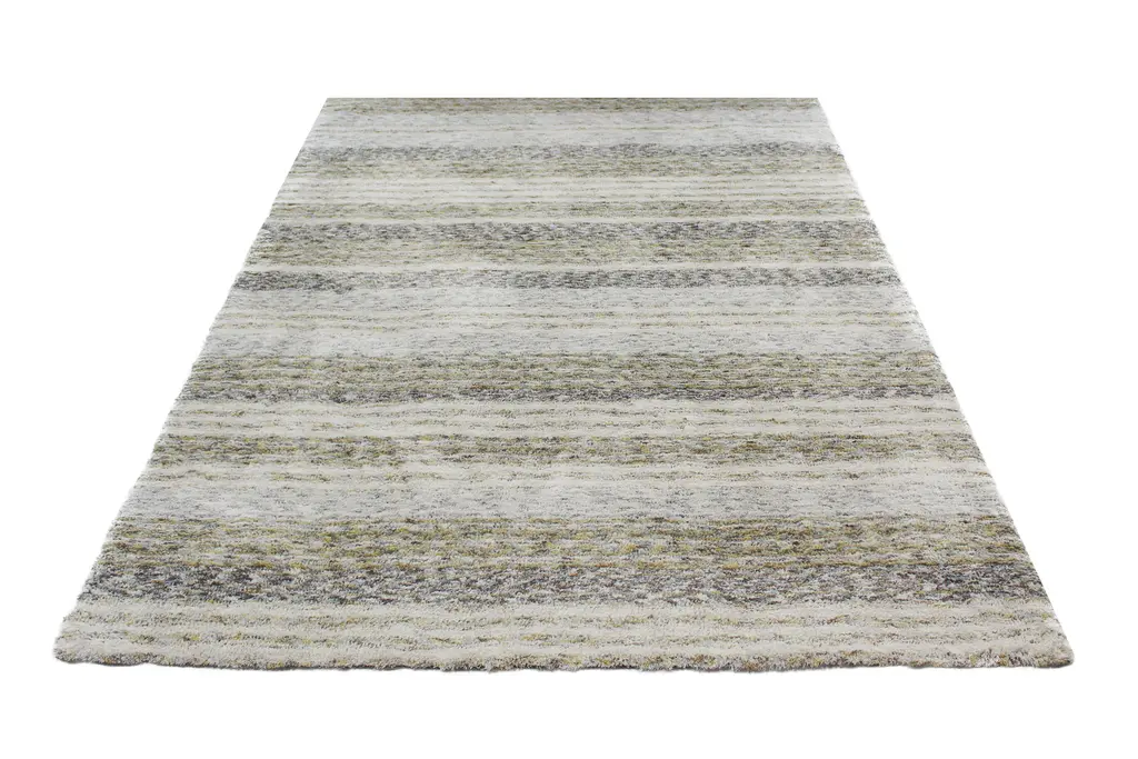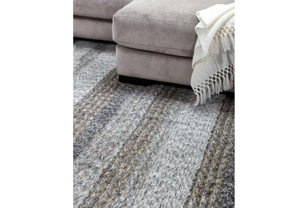 Add a touch of comfort and style to your living space with this 8'x10' Rug-Plush Shag Striations in Taupe. The pewter tones and striped design create a versatile look that complements a variety of decor styles. Made from durable polyester, this rug is perfect for high-traffic areas like the living room or office.