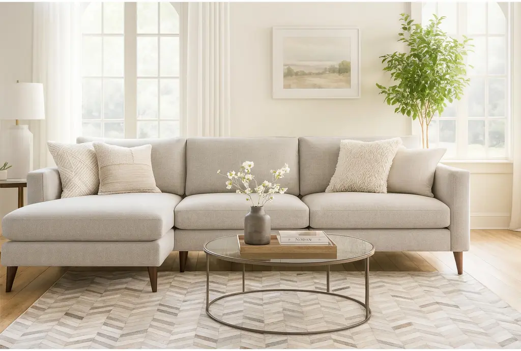 Enhance your living space with the 8'x10' Rug by Surya, featuring a contemporary chevron pattern in dark brown, camel, light grey, and cream. This low pile rug is perfect for adding a touch of modern style to any room. Made from a blend of 60% viscose and 40% hair on hide, it offers both durability and a soft texture underfoot.