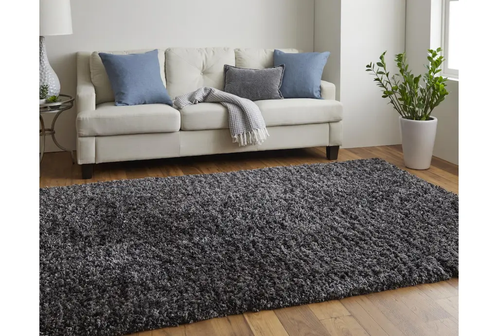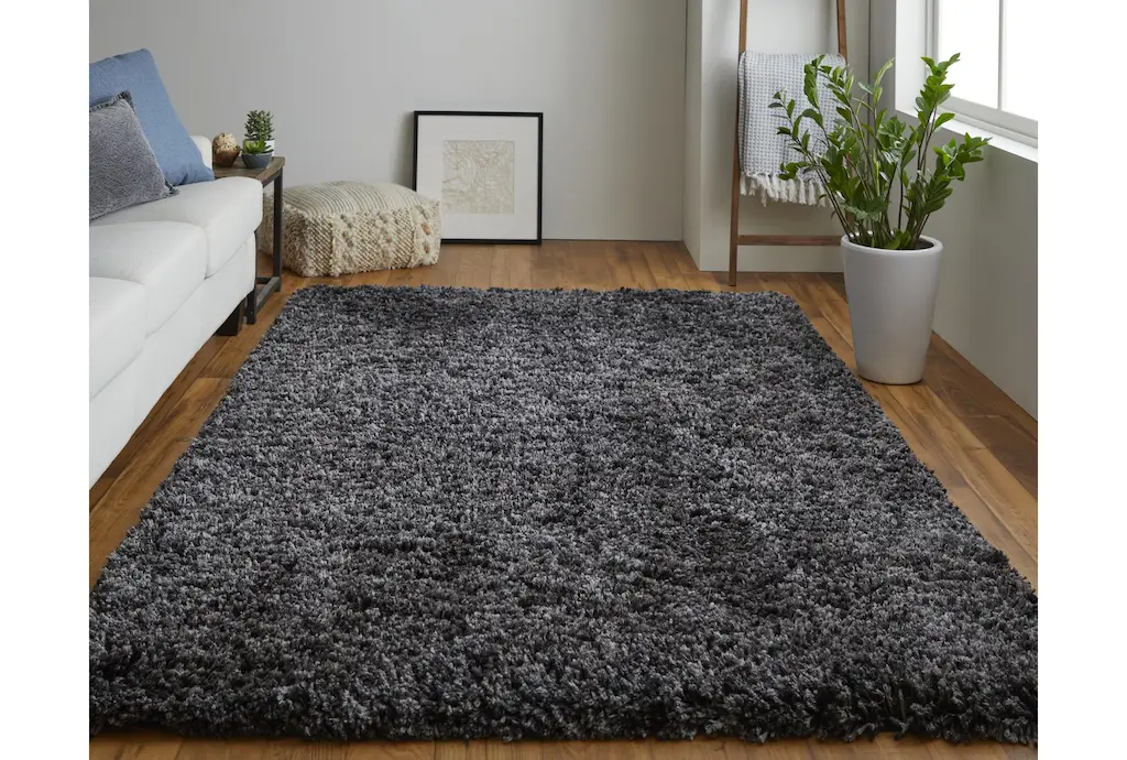 8'x10' Rug-Yarn Shag Black | Solid | High Pile | Rectangle