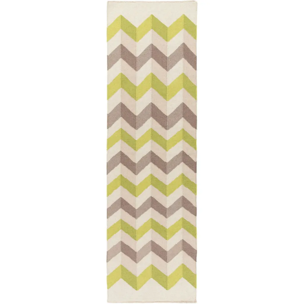 Enhance your living space with the 8'x11' Fiber Rug-Accordion Olive/Grey, designed by Surya. This contemporary rug features a stylish chevron pattern in a beautiful palette of light grey, beige, olive, and lime, adding a touch of modern flair to any room. Made with 100% wool, this low pile rug is perfect for indoor use, offering both durability and comfort.
