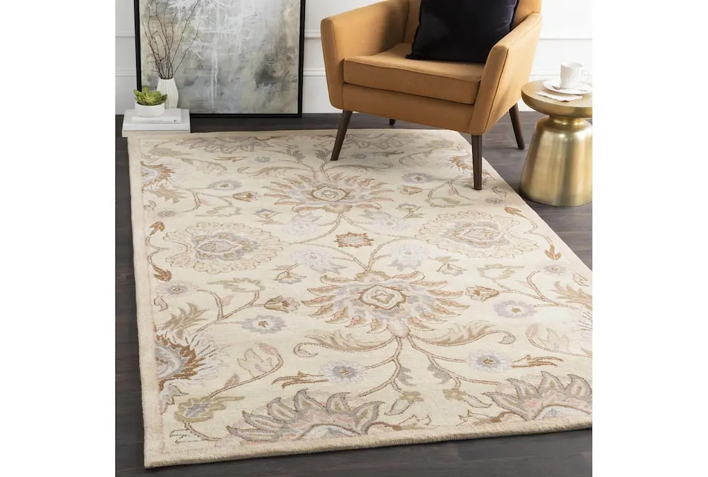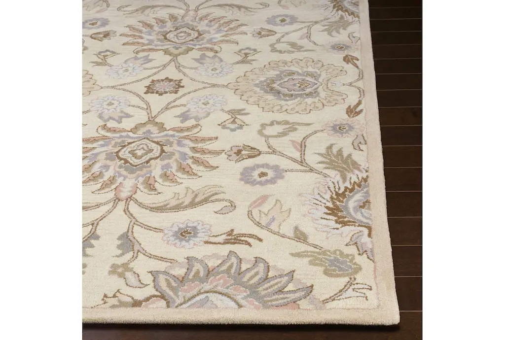 Add a touch of contemporary charm to your living space with the 8'x11' Fiber Rug-Lazio Taupe by Surya. This beautiful botanical rectangle rug features a soothing color palette of ivory, taupe, mocha, iris, mauve, moss, and rust, perfect for creating a warm and inviting atmosphere. Made from 100% wool, this indoor rug offers both durability and comfort underfoot.