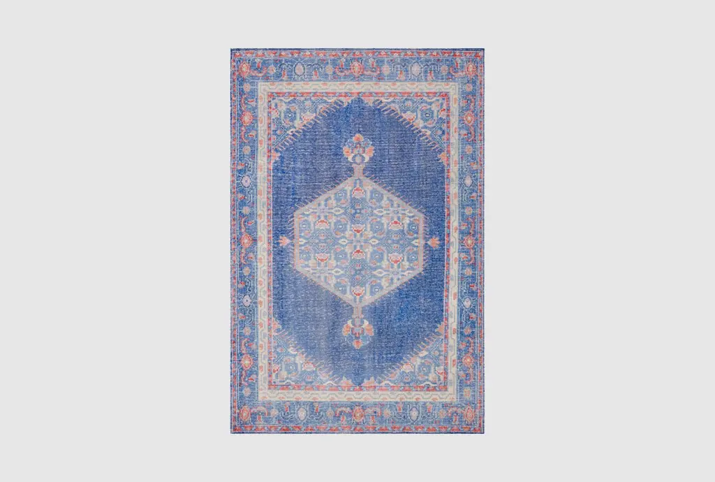 Bring contemporary style to your dining room with the 8'x11' Nancy Cobalt/Poppy rug, boasting a low pile for easy indoor maintenance. Crafted from high-quality fiber, this rug adds a pop of color to your space while providing a comfortable and durable foundation for your furniture.
